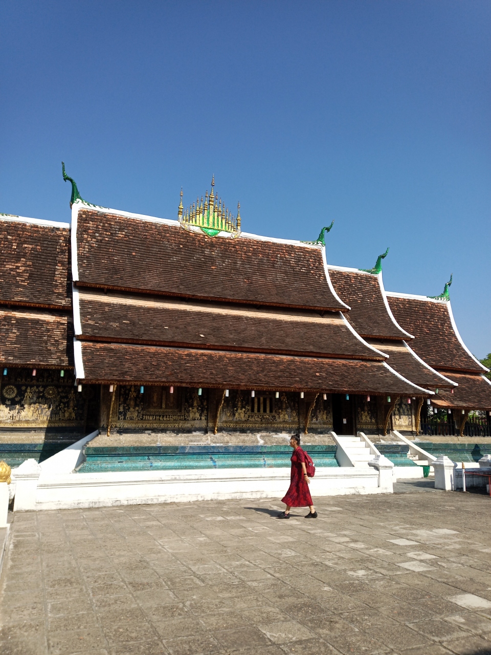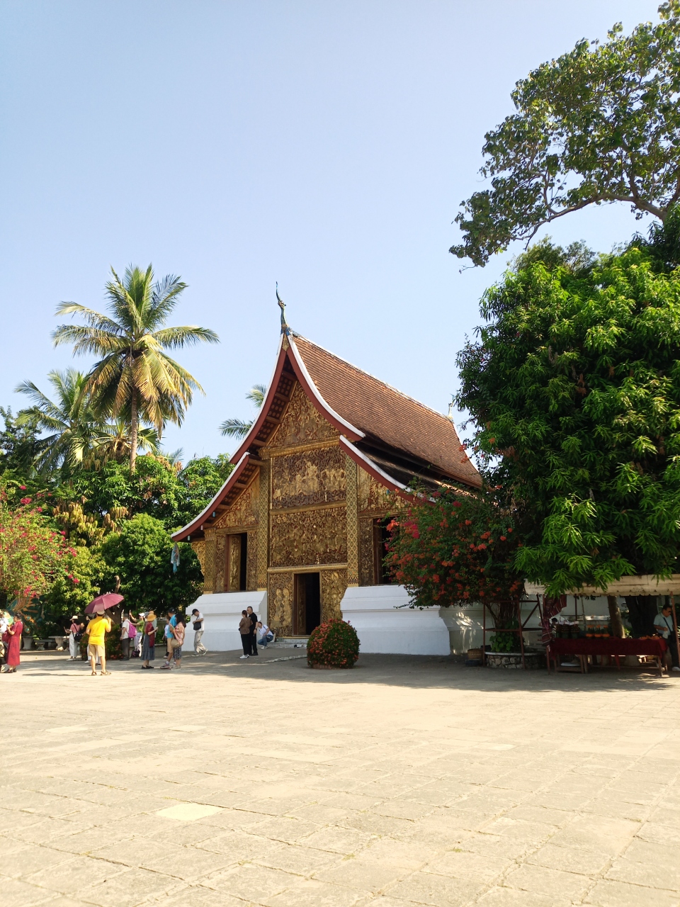 ルアンパバーンの半島側にある寺院です。敷地も広くゆったりと見ることができます。入り口は狭くて両側が露店になってるのでちょっと分かりづらいかもしれません。場所的にどのホテルからも徒歩または自転車で行くことができると思います。