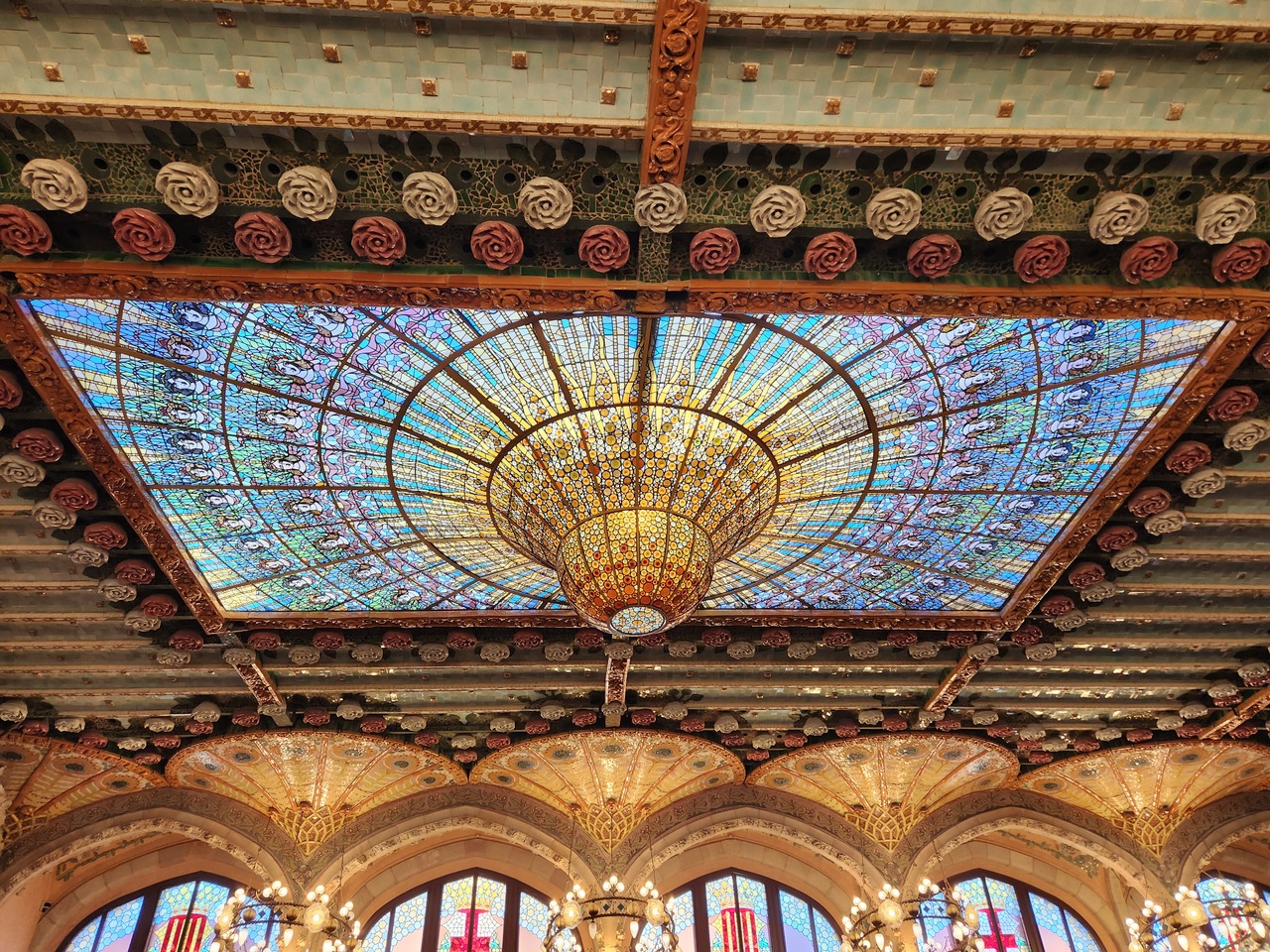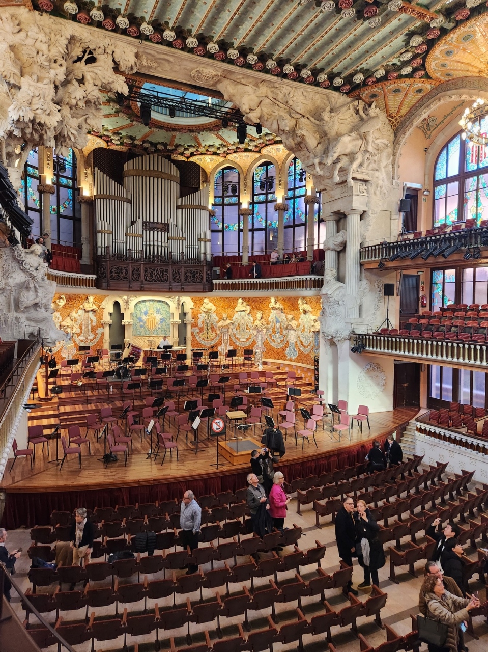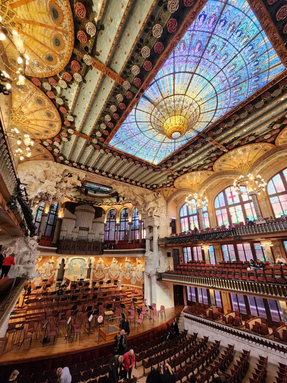 バルセロナ、旧市街にあるコンサートホールです。ガウディの師にあたるドメネク建築の最高傑作だと私は思っています。前回はバルセロナに1泊しか滞在できずその日の夜の催し物のフラメンコを観ましたが暗めの音楽と旅の疲れで寝てしまいました。今回は5日滞在でき、いくつか催し物の選択肢があったのでシュトラウスを主とするニューイヤーコンサートに行ってきました。堅苦しいクラシックだけでなく突然YMCAを演奏して盛り上がったり、スペイン語がわからなくても観客参加型で一体感がありとても楽しめました。(一番お安い3階のサイド席で40ユーロ、旅行の3週間前に公式サイトで購入) ドメネクの建築が好きであの空間に90分間、身をおくことができる幸せ、2024年1年間の楽しいこと辛いことなど全ての出来事を走馬灯のように振り返ることができました。バルセロナを再訪することがあればまた必ず戻りたい素晴らしい空間です。