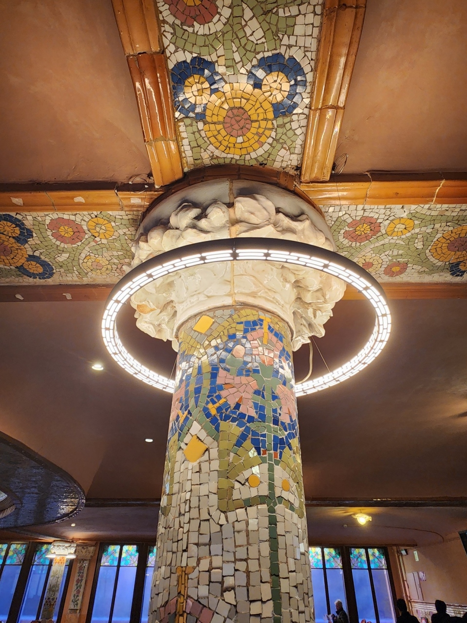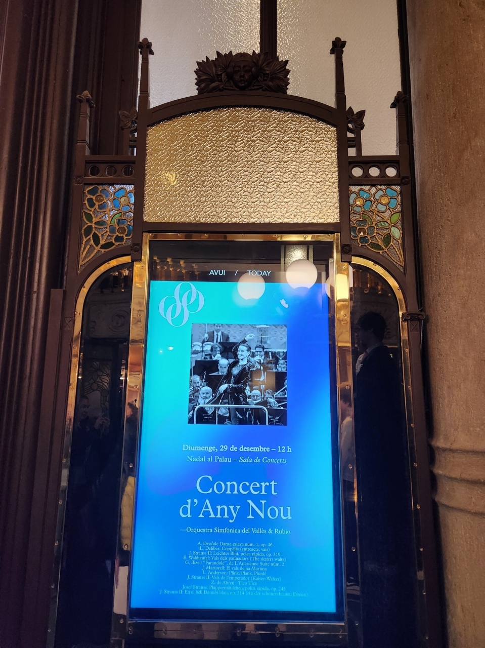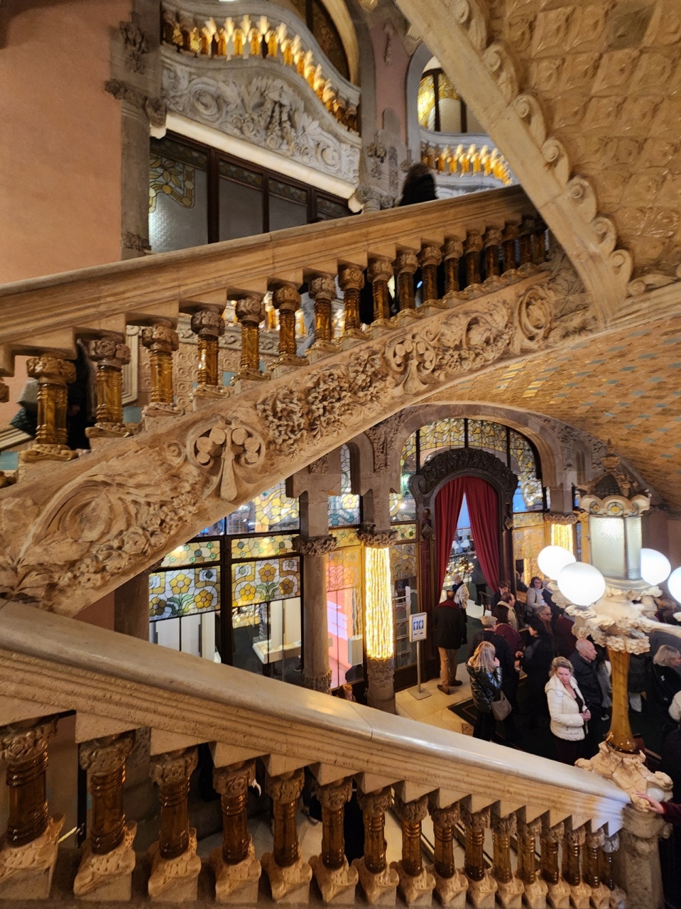 バルセロナ、旧市街にあるコンサートホールです。ガウディの師にあたるドメネク建築の最高傑作だと私は思っています。前回はバルセロナに1泊しか滞在できずその日の夜の催し物のフラメンコを観ましたが暗めの音楽と旅の疲れで寝てしまいました。今回は5日滞在でき、いくつか催し物の選択肢があったのでシュトラウスを主とするニューイヤーコンサートに行ってきました。堅苦しいクラシックだけでなく突然YMCAを演奏して盛り上がったり、スペイン語がわからなくても観客参加型で一体感がありとても楽しめました。(一番お安い3階のサイド席で40ユーロ、旅行の3週間前に公式サイトで購入) ドメネクの建築が好きであの空間に90分間、身をおくことができる幸せ、2024年1年間の楽しいこと辛いことなど全ての出来事を走馬灯のように振り返ることができました。バルセロナを再訪することがあればまた必ず戻りたい素晴らしい空間です。