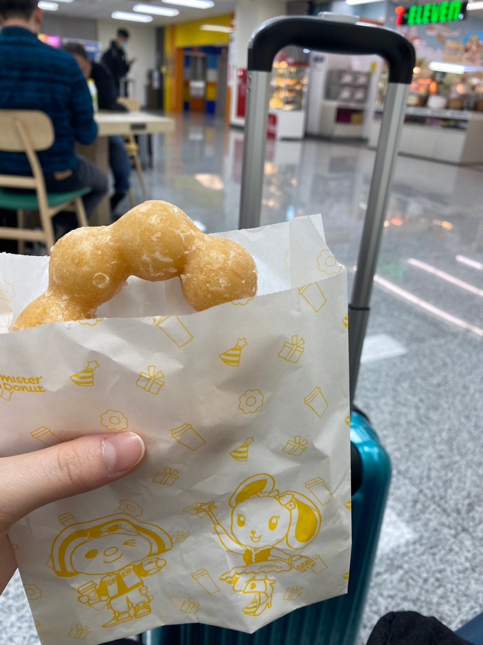 桃園空港より便利なので、台北に行く時にはいつも利用しています。コンパクトなので店などは少ないけれど、その分人も少なくて、手続きなどがスムーズです。国内線ターミナルにフードコートができたのでレストランもだいぶ充実しました。国内線ターミナルにあるセブンイレブンは最後のお買い物などよく利用しますが、今回はミスドのポンデリングを買ってみました。日本のとはちょっと違って面白かったです。あとはセブンイレブンのすぐ前に出店していた「喜楽紅豆餅」もタロイモ餡があっさりしていて美味しかったです。サブウェイも日本とはメニューがちょっと違うけれど美味しかったです!出国前に空港で食べすぎました(笑)
