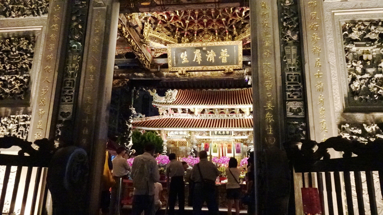 龍山寺は地元の信仰が厚く、いろいろな世代の人が参拝に来てます。境内にお経が流れていますが、日本とのは違い明るく軽やかなお経ですので、お寺の中の彫刻や飾りなど見るべきものが多くありますので、観光的要素が多くゆったり時間を過ごすのがお勧めです。
