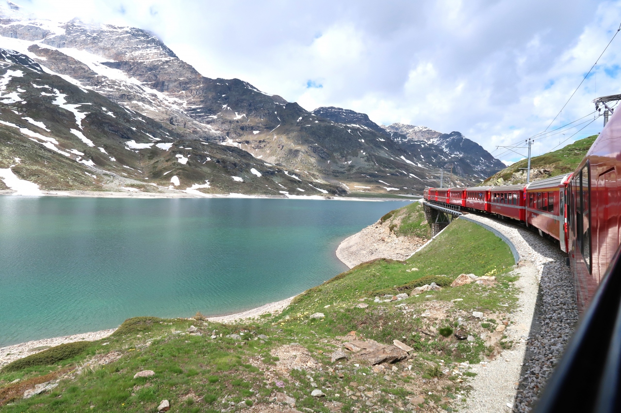 6月がオフシーズンだと知らずに訪れたサンモリッツ。スイストラベルパスで乗れるベルニナ線に乗車して、ティラーノまで往復しました。新しい車両ははめ殺し窓が多くなっていました。窓が開けられる席に座り車窓風景を楽しみました。行きは見どころをチェックする感じ。帰りの方が、ループ橋もきれいに見え、氷河も迫力がありました。高度が高くなってくると、耳が聞こえにくくなってくるので、気圧の変化に敏感な方は、飛行機に乗る時のようにキャンディを準備しておくといいでしょう。