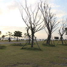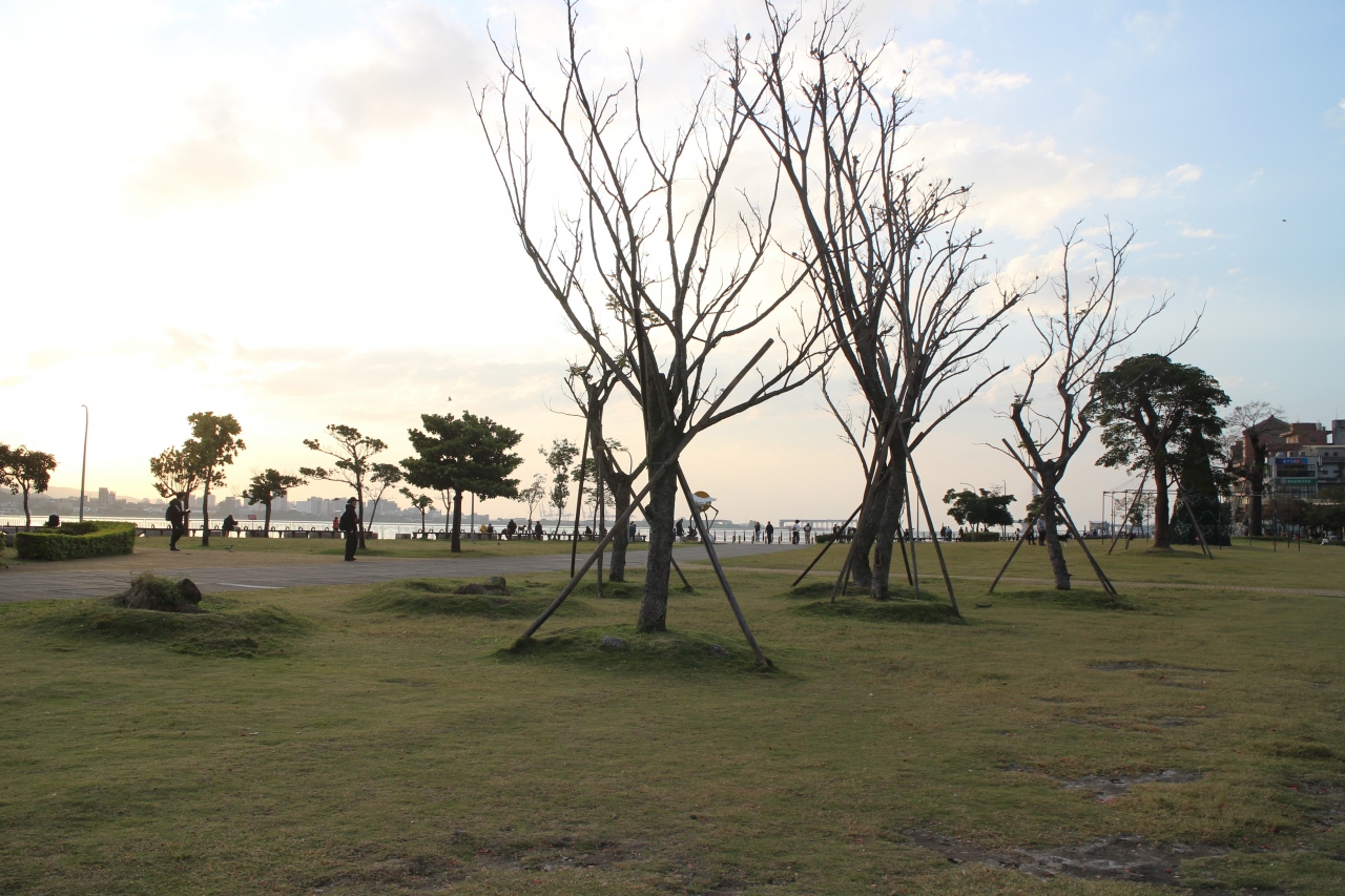 MRT淡水駅をでて すぐに南側を見ると淡水河が見えて 階段を数段おりるとずっと河沿いにベンチが幾つもある公園があります