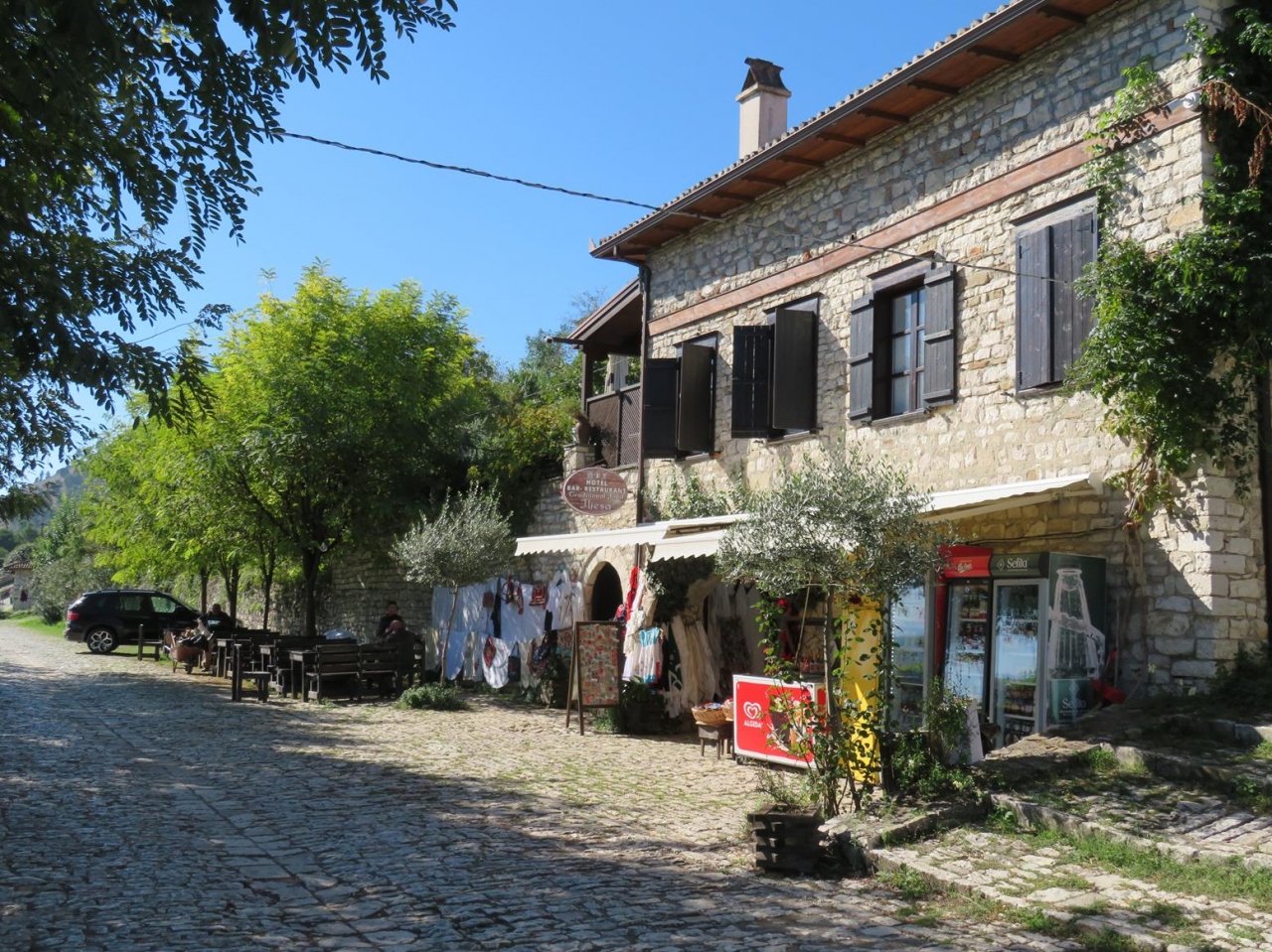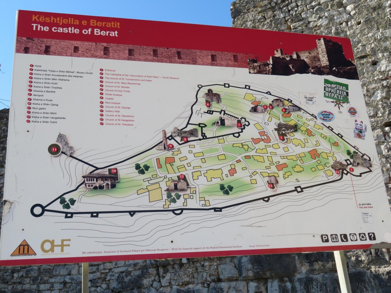 ベラトの町からは岩山に巡らした城壁がよく見えるので行ってみましょう。