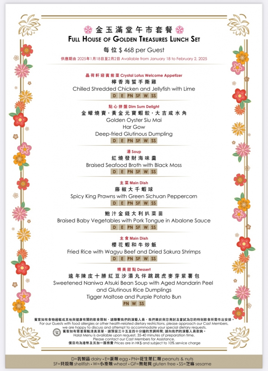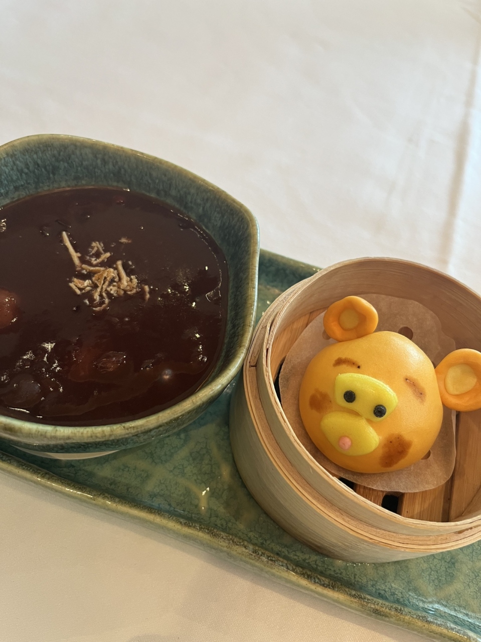 香港ディズニーランドホテル内のレストランでランチをしました。今回は旧正月限定ランチを注文しました。お値段は$468です。前菜、点心、スープ、メイン、デザートまで全て美味しくいただきました。今回はティガーの点心でした。予約は必須でキャラクターの点心は曜日により決まっていますが、直接レストランへ他のキャラクター点心のリクエストも可能です。