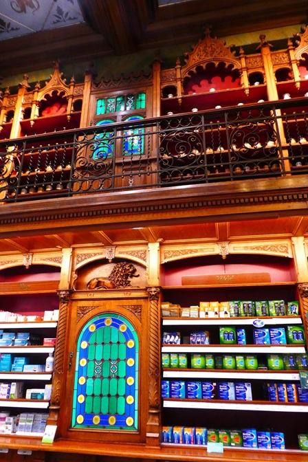 古い薬局ですが、お店に並んでいたものは、シャンプーなどの薬以外のものも多く、日本のドラッグストアと同じ感じなんですけど、壁に並べられた薬の箱がいい感じの配色になってたりして、年季の入った木製の什器と相まって、とてもステキに見えました。