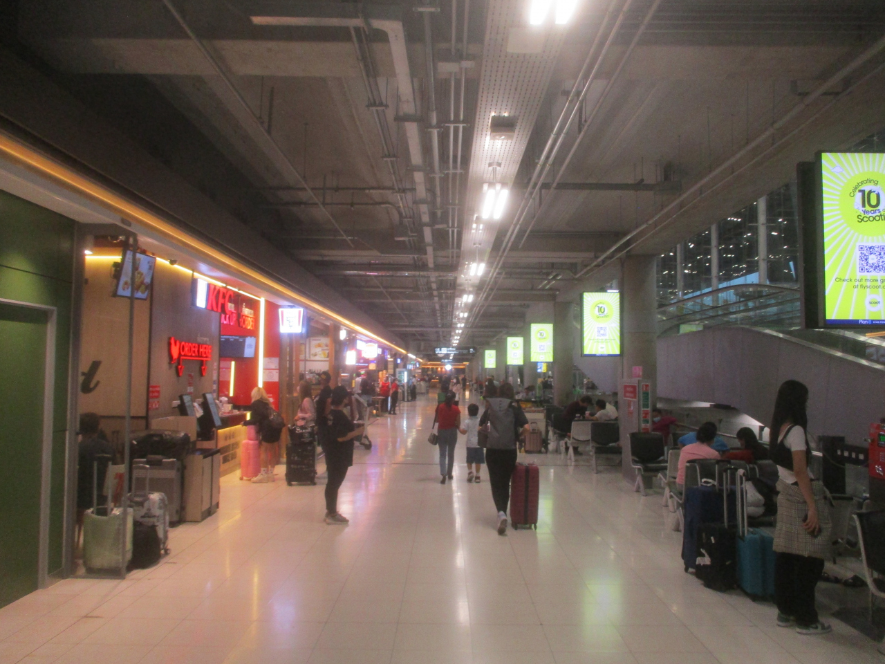 スワンナプーム国際空港の3階がレストラン街になっています。到着フロアは2階、出発フロアは4階ですので、それぞれフロアの移動が必要になります。通常、出発階にあるものですが、1フロア全部をレストラン街として占有しているので、規模が大きかったです。