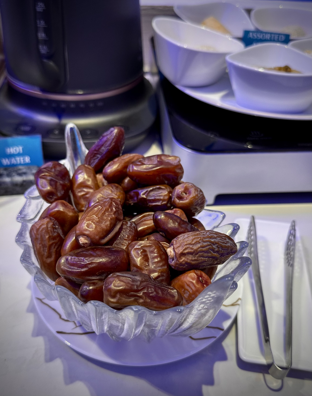 食事もインターナショナルなのだが、デーツやナン、ハロウミなんかもあった。