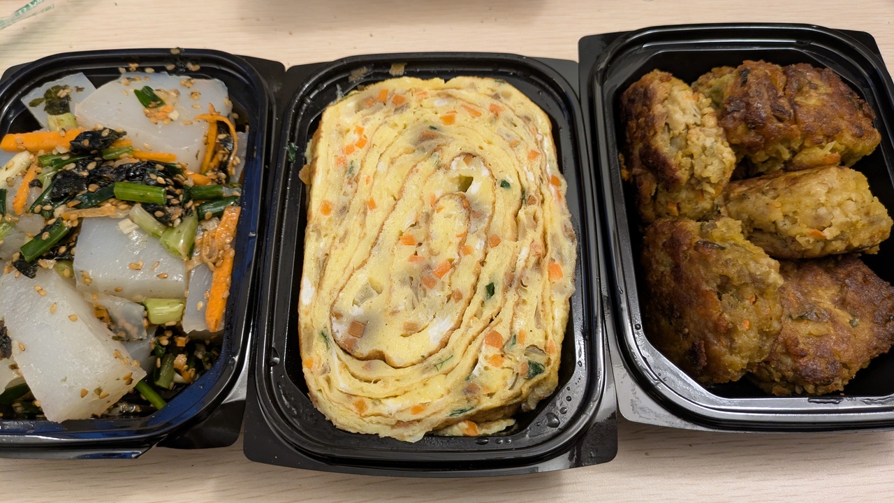 他の市場と比べたら、小規模だし、観光客はほぼいない。疲れていたので、繁華街での夕食が嫌だったので、市場の総菜屋さんで買い物。3パックで10000Wでした。卵焼きがおいしかった。見たところ、現金かペイ払い。