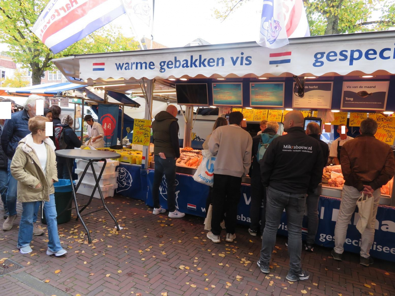 魚屋さんでは、時期が合えばオランダ名物の生ニシンのサンドイッチも楽しめます。