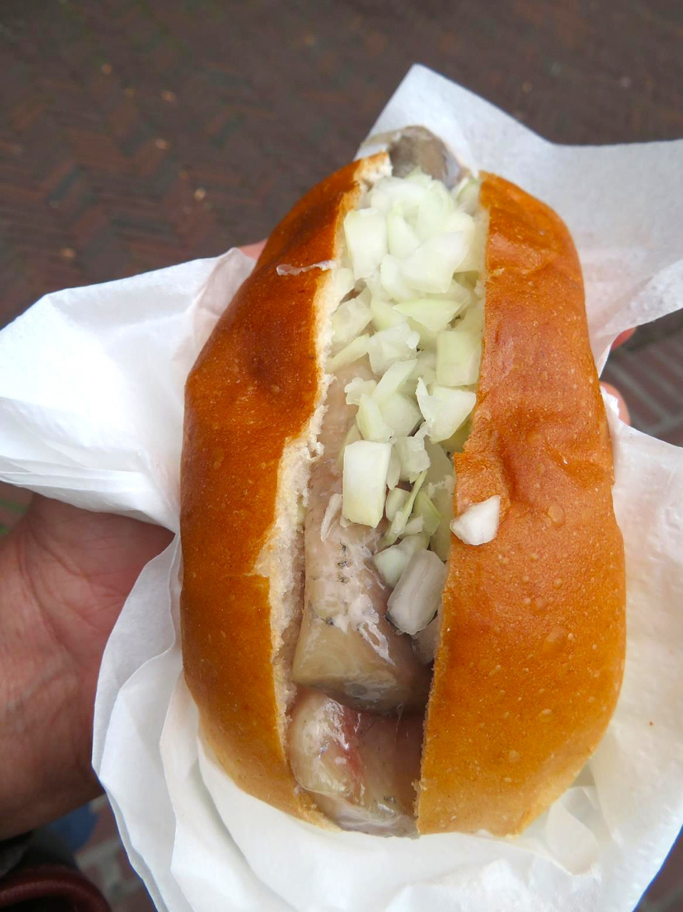 トロッとした生ニシンとピリッとしたタマネギの風味のサンドイッチは日本人にも合っていると思います。
