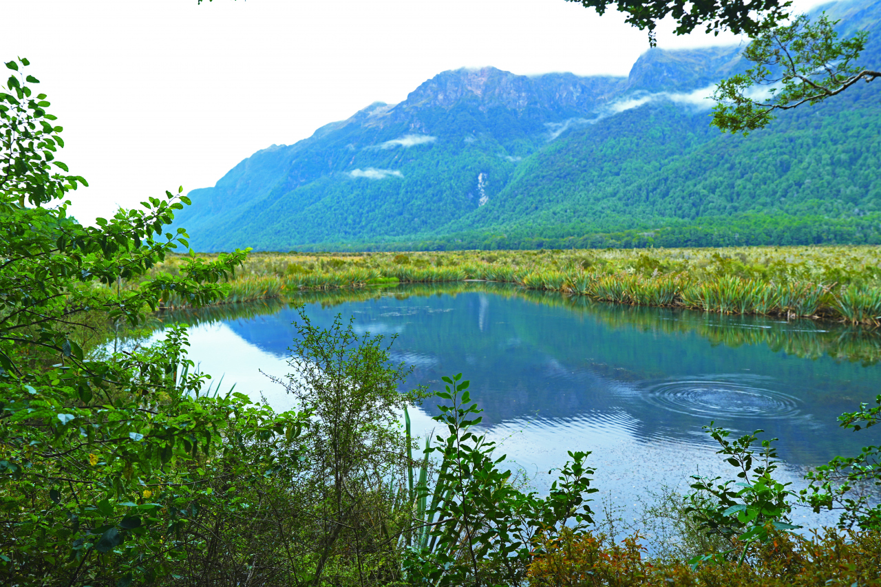 テアナウからミルフォードサウンドの道中にある小さな湖です。風がなければ、湖面に目の前の山々が鏡映しのようになるからそう名付けられたようです。