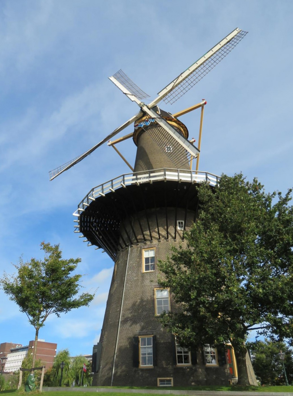 ライデン中央駅から徒歩10分足らずの公園にある市立風車博物館は、1743年に建てられ1964年まで稼働していた高さ29mの風車。