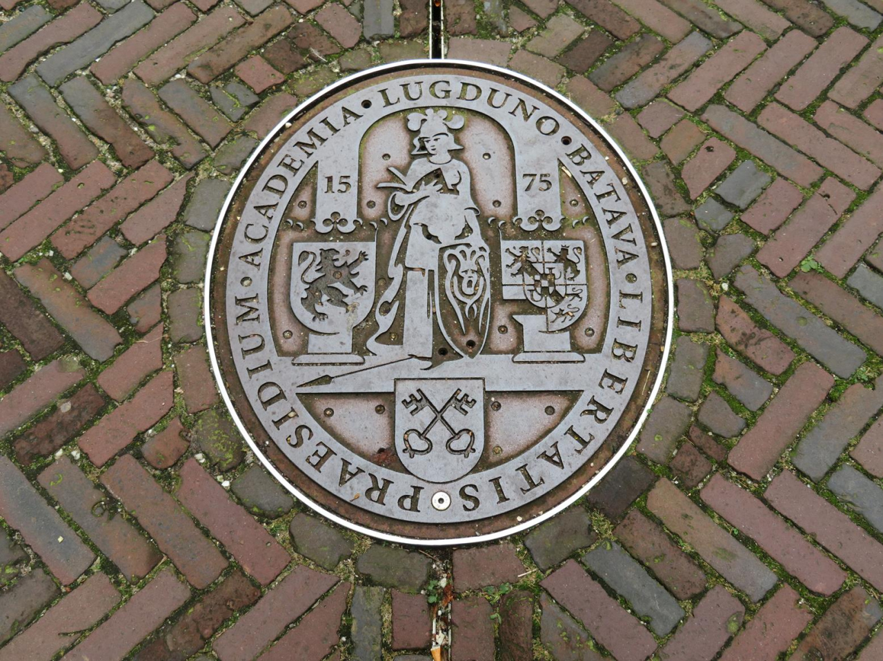 それらの言葉とライデン大学の校章を刻んだマンホール蓋のようなプレートが、構内に入った通路上にはめ込まれているのをお見逃しなく。