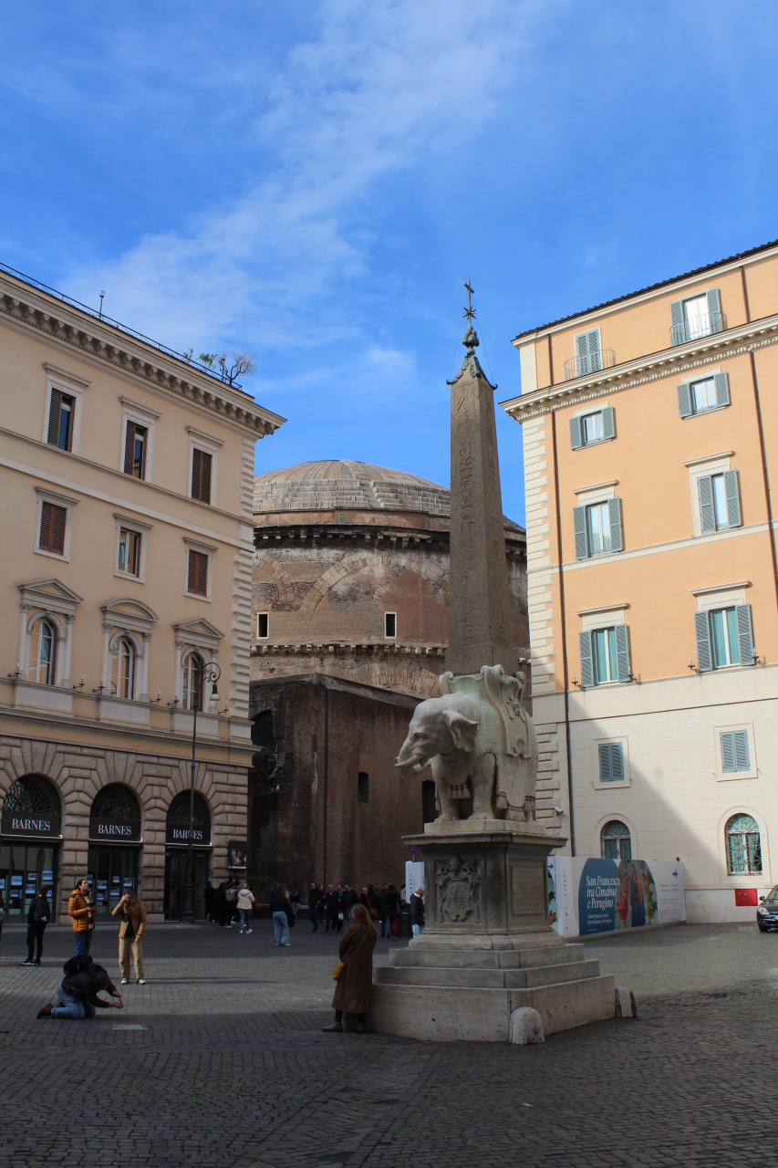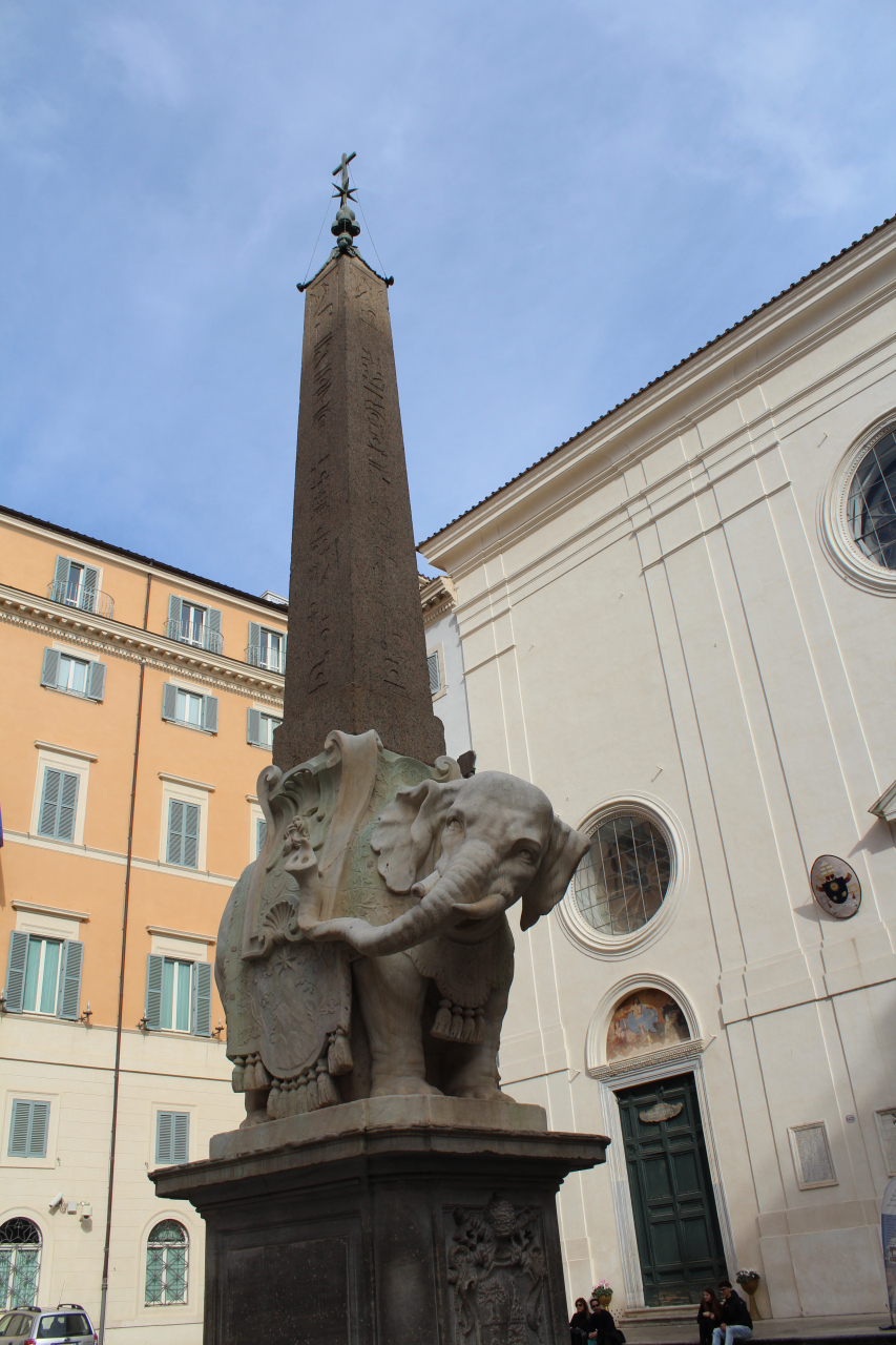 ドミニコ修道会の庭で見つかったエジプトのオベリスクをゾウの彫像が土台となって支えています。