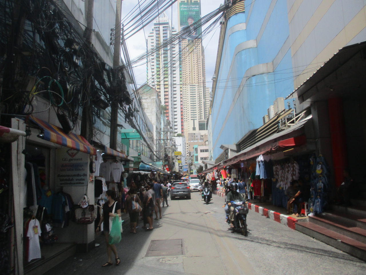 プラトゥーナーム市場は、バンコクで有名な衣料品市場です。服を取り扱うお店がたくさんあり、Yシャツが100バーツ、Tシャツが80バーツ、下着が50バーツ以下など、値段が安かったです。衣料品のお土産を買うならおすすめの市場でした。