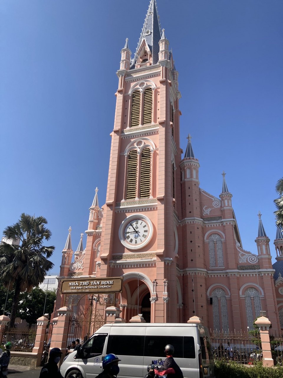ただ、外観だけでも満足できる教会なので訪問をお勧めします。ピンクの外観がインスタ映えします。私たちはミサに参加できなかったので、道路を渡って反対側にあるCong Ca Pheでお茶しながら教会を眺めていました。こちらのカフェからも教会をバックに写真を撮ることができ、こちらも有名な写真スポットになっているようです。