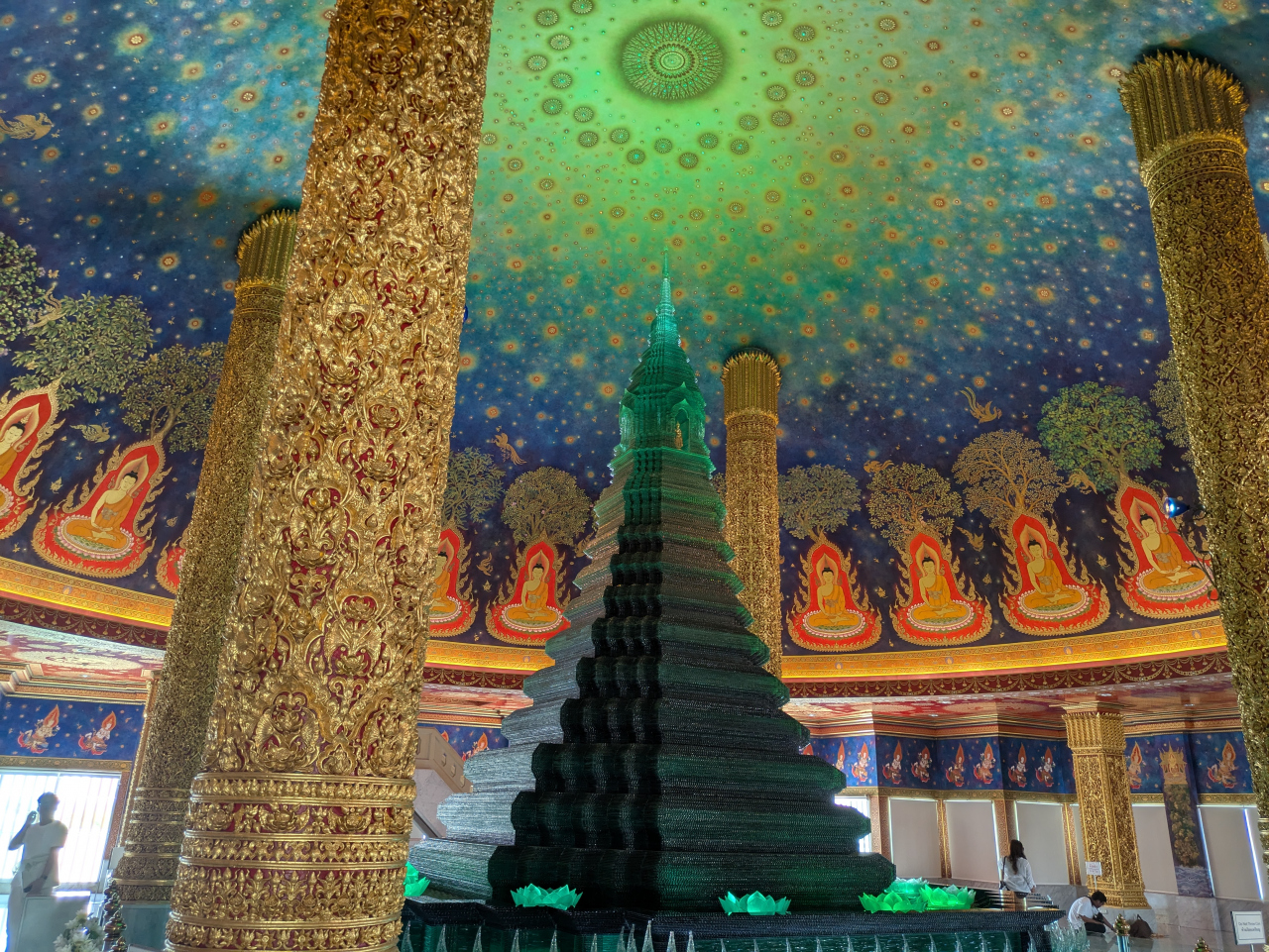 1階はタイの芸術や文化遺産の展示、2階は瞑想ルーム、3階は博物館、4階には本堂と異なるルアン・ポーソッド師の像、5階には話題の仏舎利奉安塔と仏伝図があります。