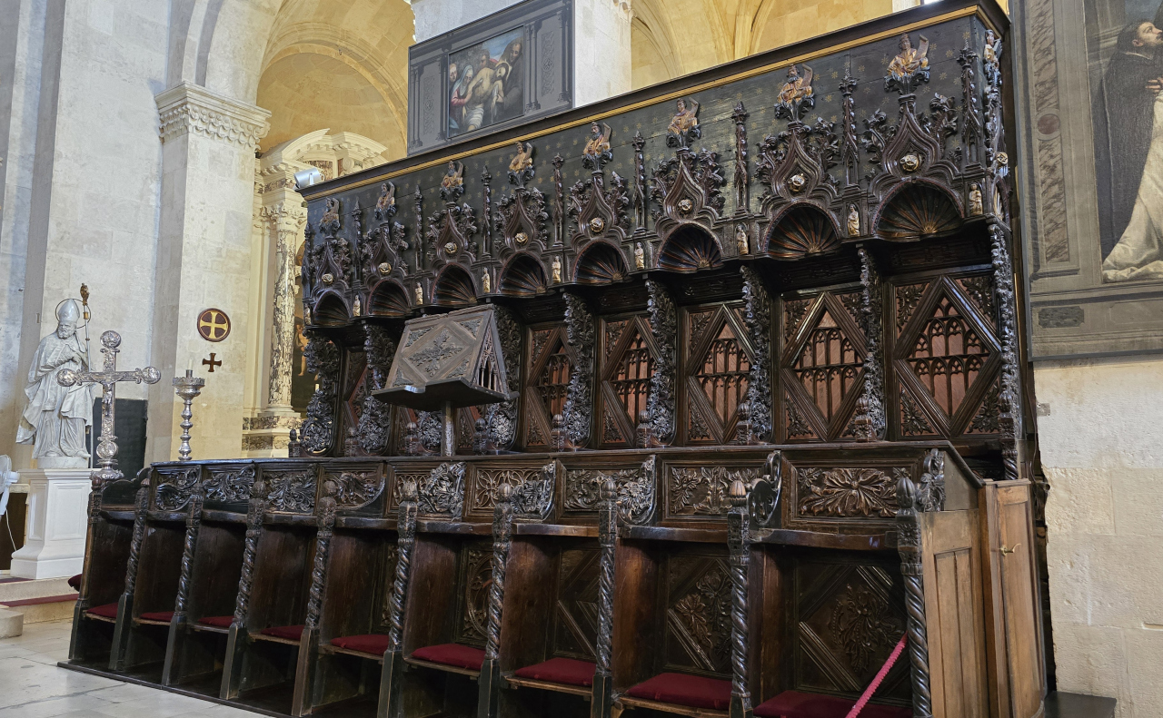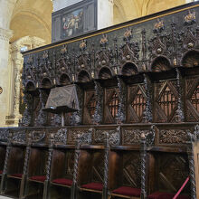 内部はスッキリした色合いで圧迫感がありません。聖歌隊席の彫刻が見事です。