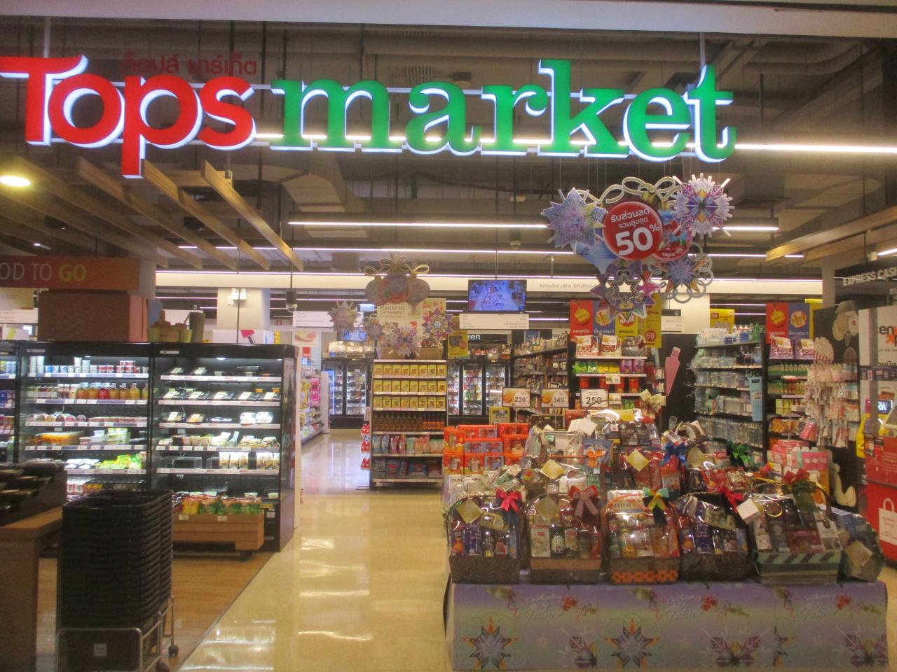 センチュリー ザ ムービープラザ オンヌットの地下1階にトップス マーケットがありました。大型ショッピングセンターサイアムパラゴンにもスーパーはありますが、こちらの方が空いており価格的に安い印象を受けました。BTSオンヌット駅の電車の下を通る歩道橋が2階とつながっているのでアクセスは良かったです。