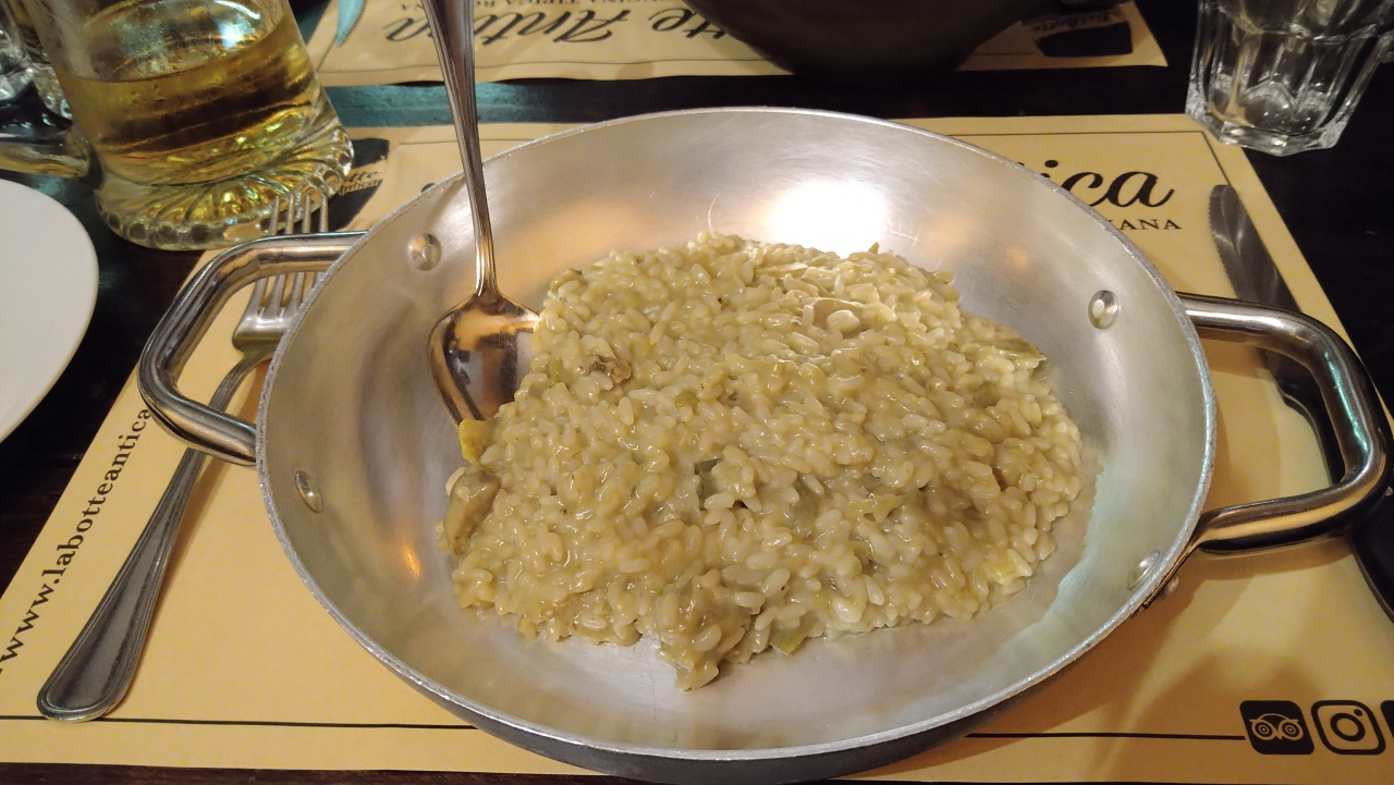 ピッツァはカプリチョーザ、旬のアーティチョークのリゾットを