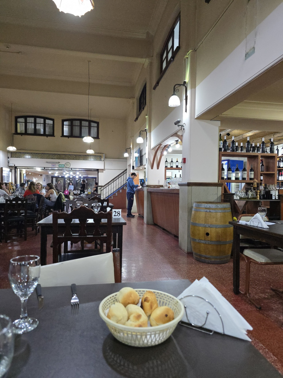 レストランは地階にあるのでちょっと目立たない感じですが、町では有名なレストランのひとつです。イカのフライや魚介類のアヒージョ、パエリアなどがメニューにあるようにシーフードが充実していますが、パスタや肉料理などアルゼンチンでよく見られるメニューもあります。