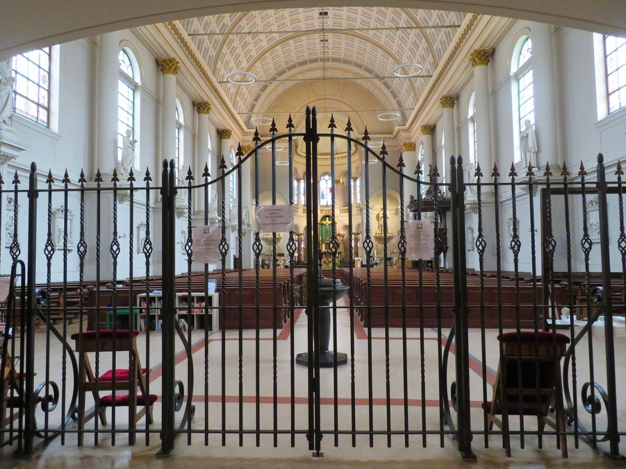 正面の扉が開いていたので入ってみたところ、身廊手前のフェンスは閉じられていたのが残念でしたが、内部の美しい造りや装飾はフェンス手前からでも十分に感じ取られ、しばし街のざわめきから離れたシンと静まった空気感が味わえました。
