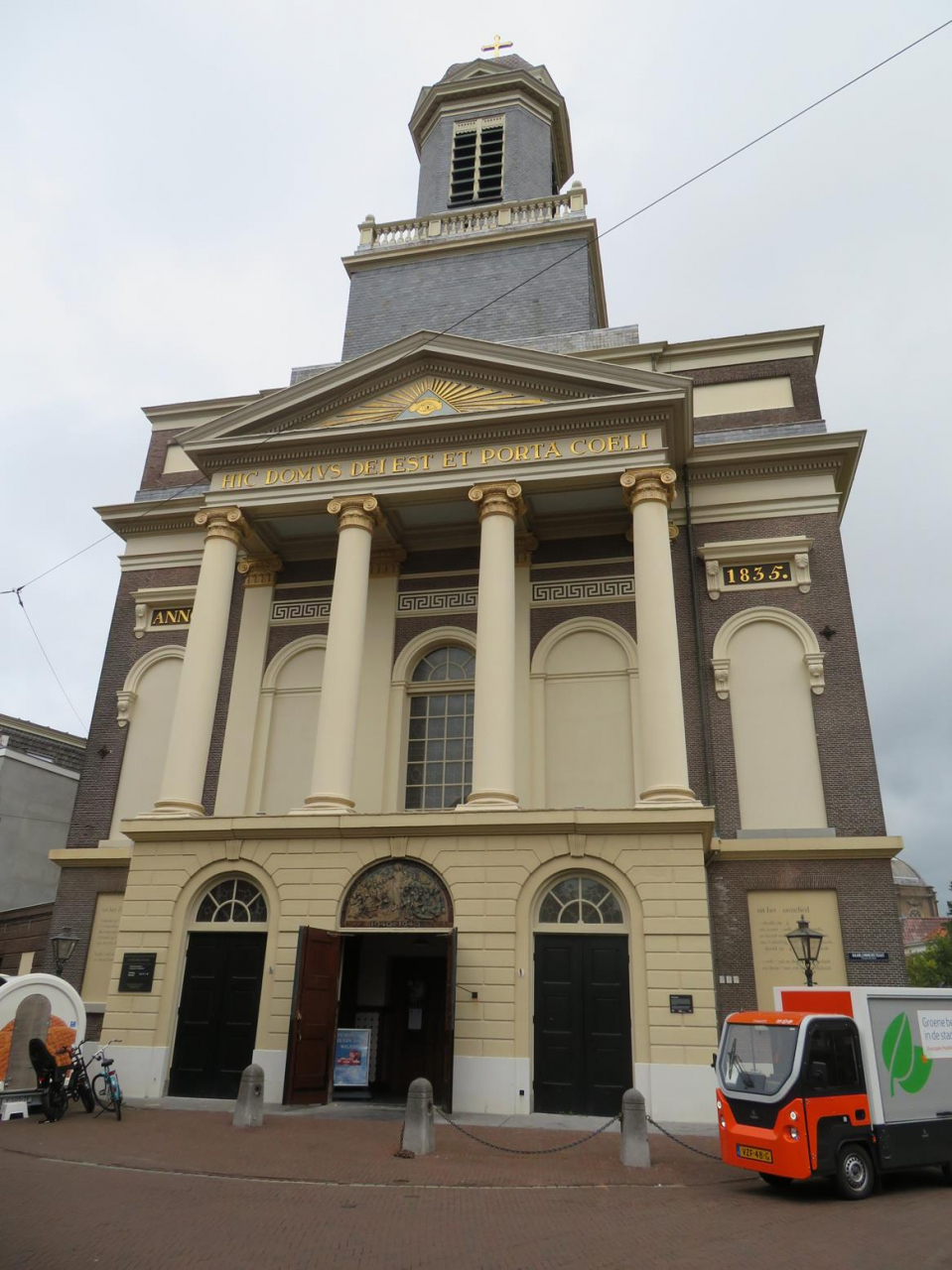 商店が賑やかに並ぶハーレマー通りに不意に現れる教会
