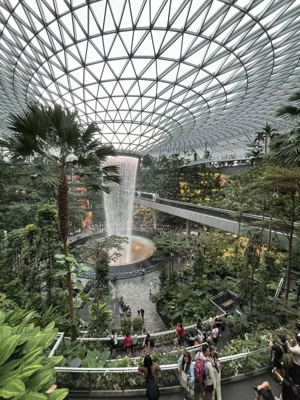 チャンギ空港の新名所になっている大きな滝があるショッピングモールです。どのターミナルからも往復が可能です。シンガポール航空はアーリーチェックインが可能なので、早めに空港に到着してゆっくり見て回るのも楽しいと思います。セキュリティゲート後のターミナル内では、スカイトレインを使えばどのターミナルからもアクセスができます(滝を見ることはできますが、制限区域内からだとショッピングエリアに行くことはできません)