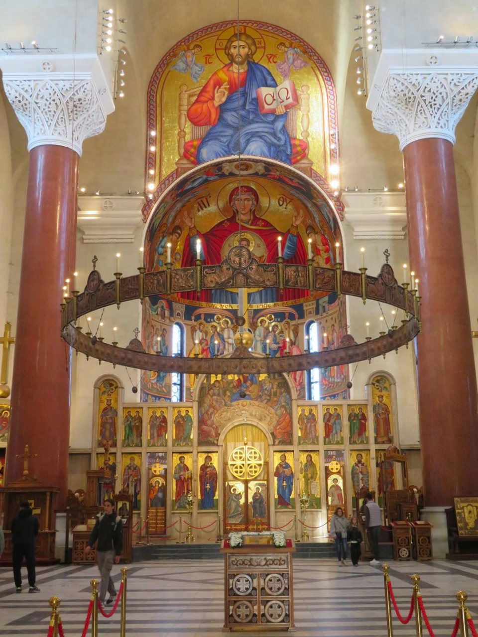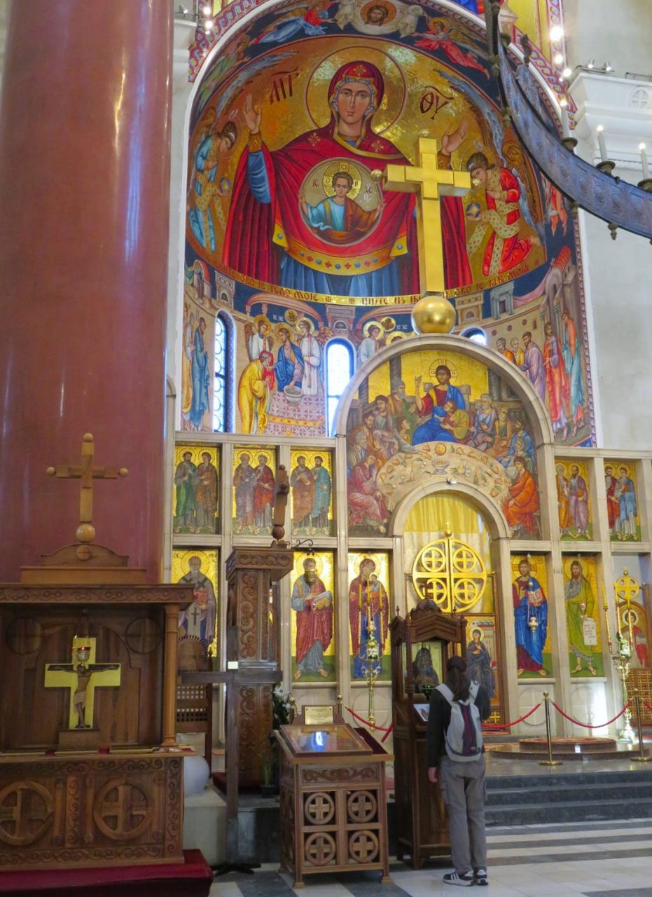 そのどっしりと重厚感ある外観も、高い天井下のきらびやかなイコノスタシス(聖所と至聖所を区切るイコンで覆われた壁)も見ごたえがあり、礼拝時には混み合いますが行ってみる価値あり。
