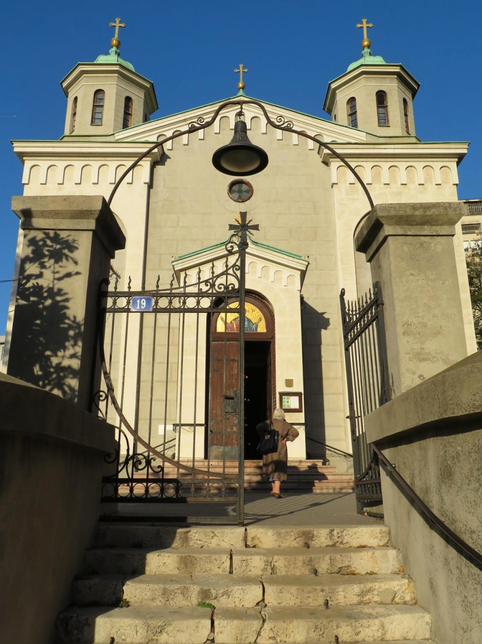 昇天教会は小粒で可愛らしい外観ですが、元々は1860年代にこのあたりの軍事施設建設に伴って造られたセルビア正教の教会。