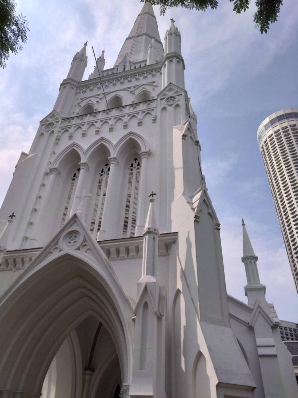 ラッフルズホテルから近く、MRT駅から歩いて行けます。荘厳で大変美しい外観、中のステンドグラスが大変美しく、心が洗われるようでした。料金は特にかかりませんので中も入って見て下さい。