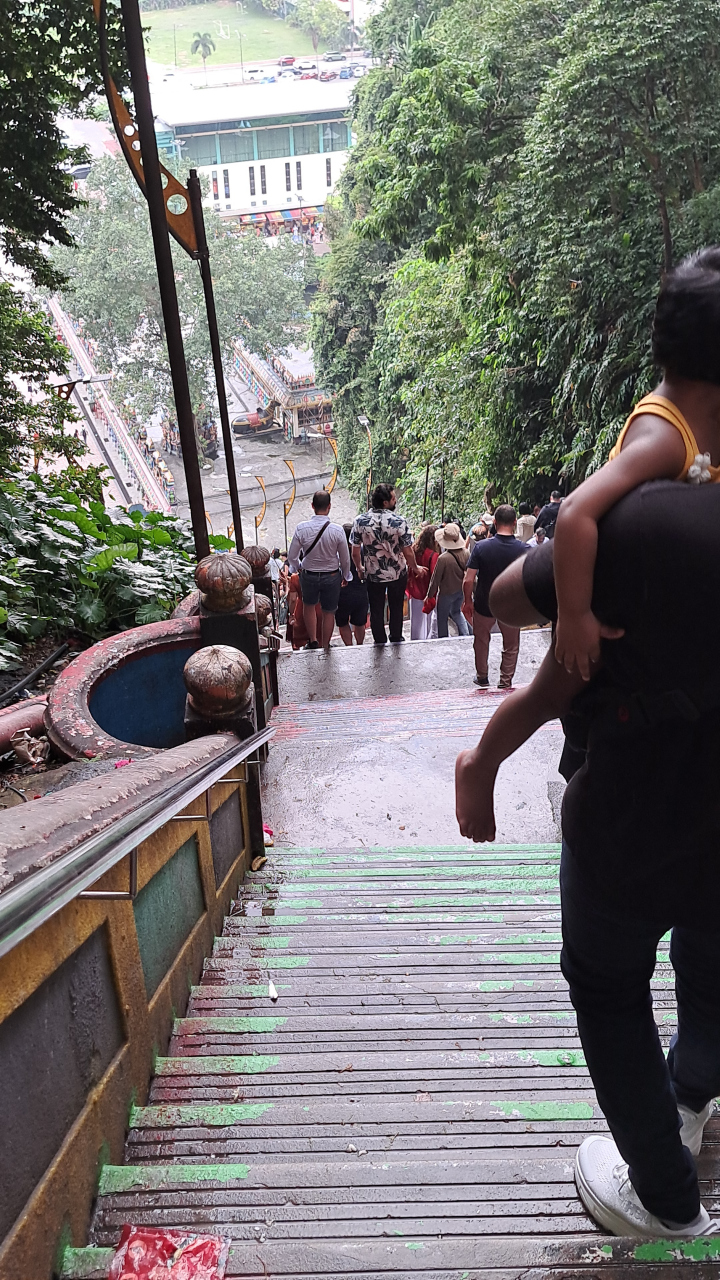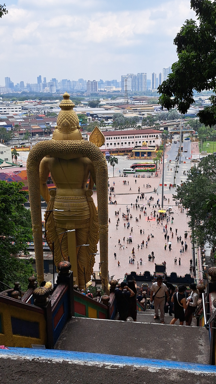 カラフルな大階段は割と急なので、途中で休憩しつつ、何とか登り切りました。階段を登りきると眼下にクアラルンプールの街並みを見渡すことができます。
