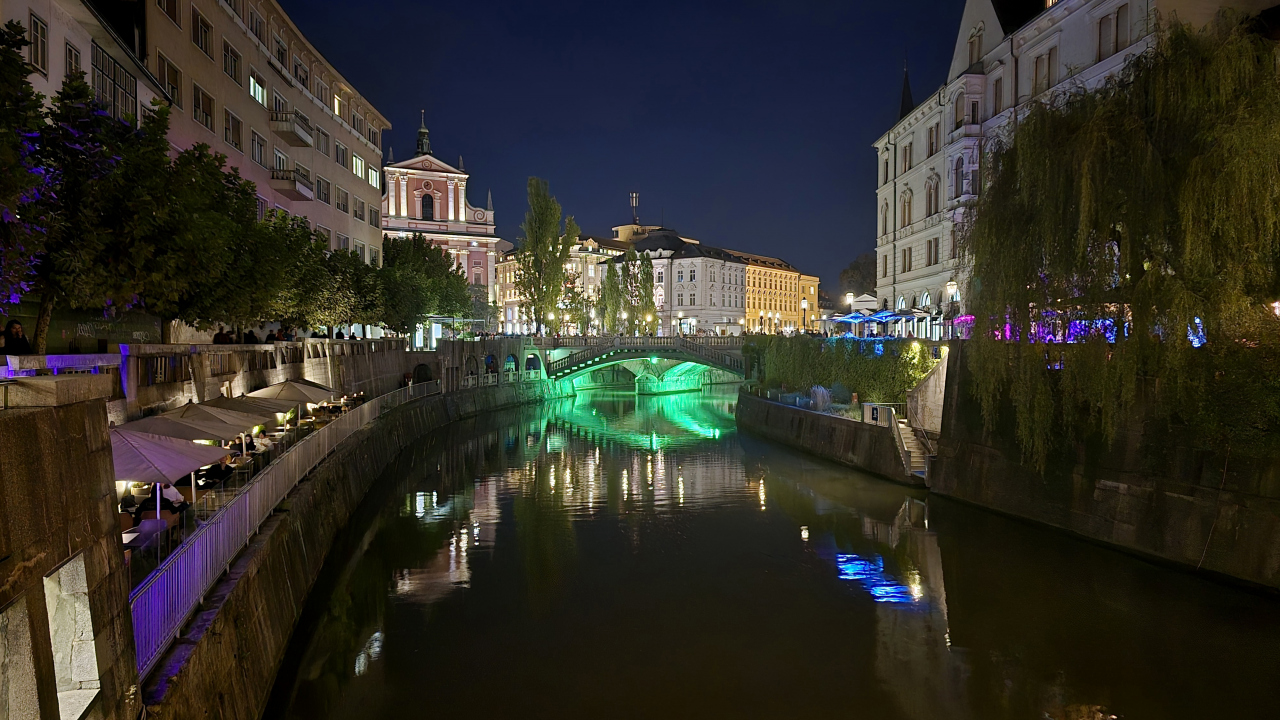 リュブリャナ市内の中心を流れる川で、旧市街と新市街の境となっています。