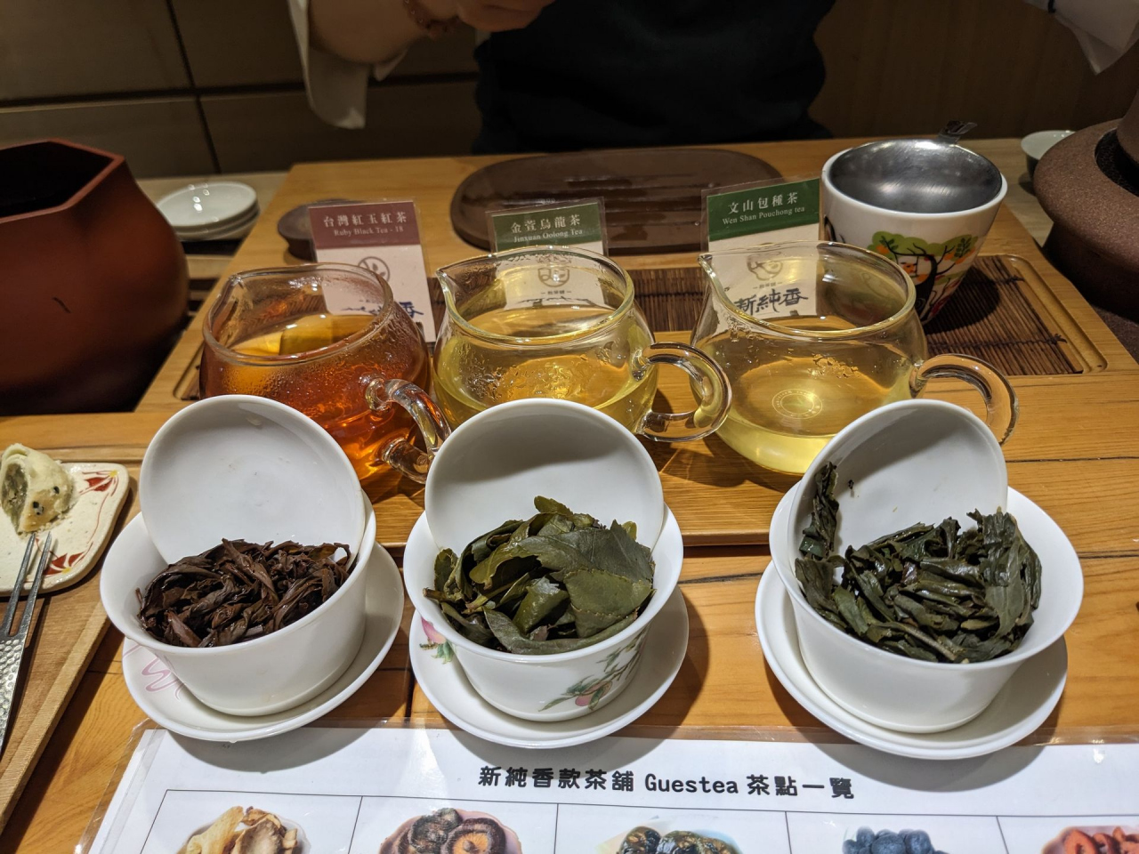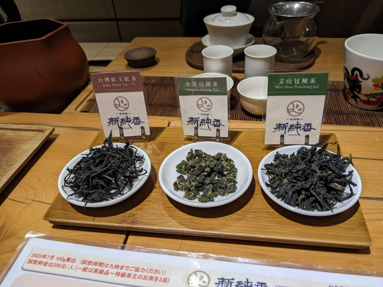 台湾のお茶をテイスティングできることで日本人旅行者に人気の新純香に、同行者(嫁さん)のリクエストで初めて伺いました。既に2組の日本の観光客の方々が、楽しんでらっしゃいました。