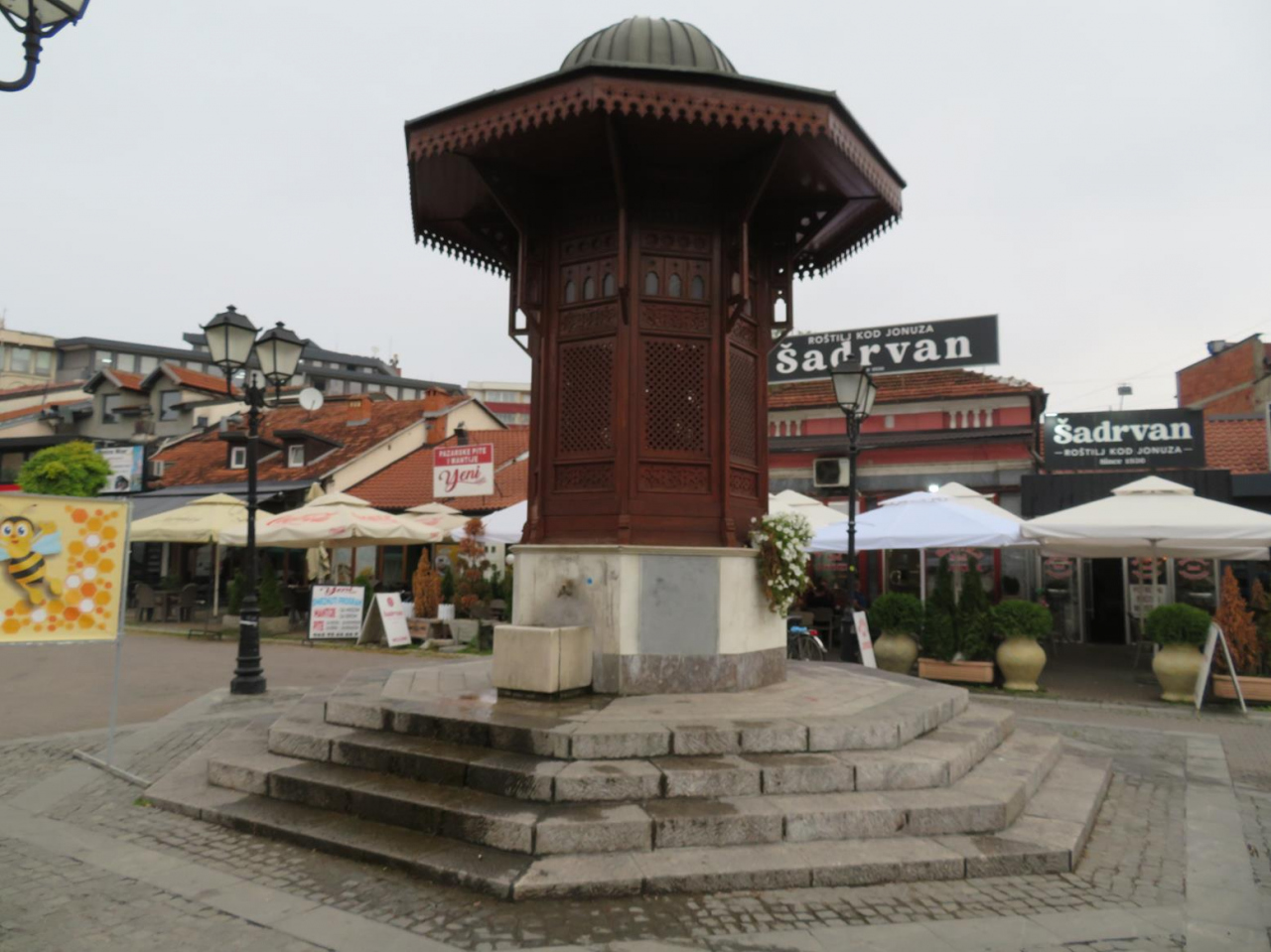 噴水と言うより、丸い頭を持つ塔の形をした水飲み場で、通りかかる人々が水を飲んだり手を洗ったりしていく場所になっているんですが、その姿がボスニア・ヘルツェゴビナの首都サラエヴォの職人街にあるセビリとそっくり!