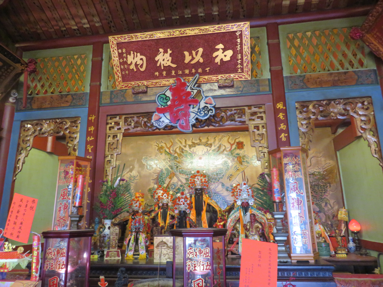 台湾と福建省の間を船で行き来する人達の航海の安全を祈るため創建は1739年で、風神廟は台湾で唯一、風神を主神に祀った廟で、台湾府城七寺八廟の一つに数えられています。中央に風神、その両側には青い水神と赤い火神が祀られていました。
