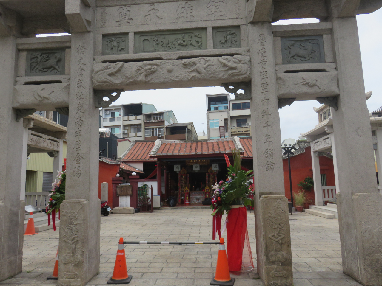 清の時代に文武官僚の送迎に使われた場所で、風神廟の前にある接官亭は、花崗岩で作られています。正面には「鯤維永奠」、裏側には「鰲柱天」と刻まれていました。台湾海峡を渡って長旅で疲れ果てた役人が、故郷に帰ったような気持ちになれるようにした送迎場所だったようです。