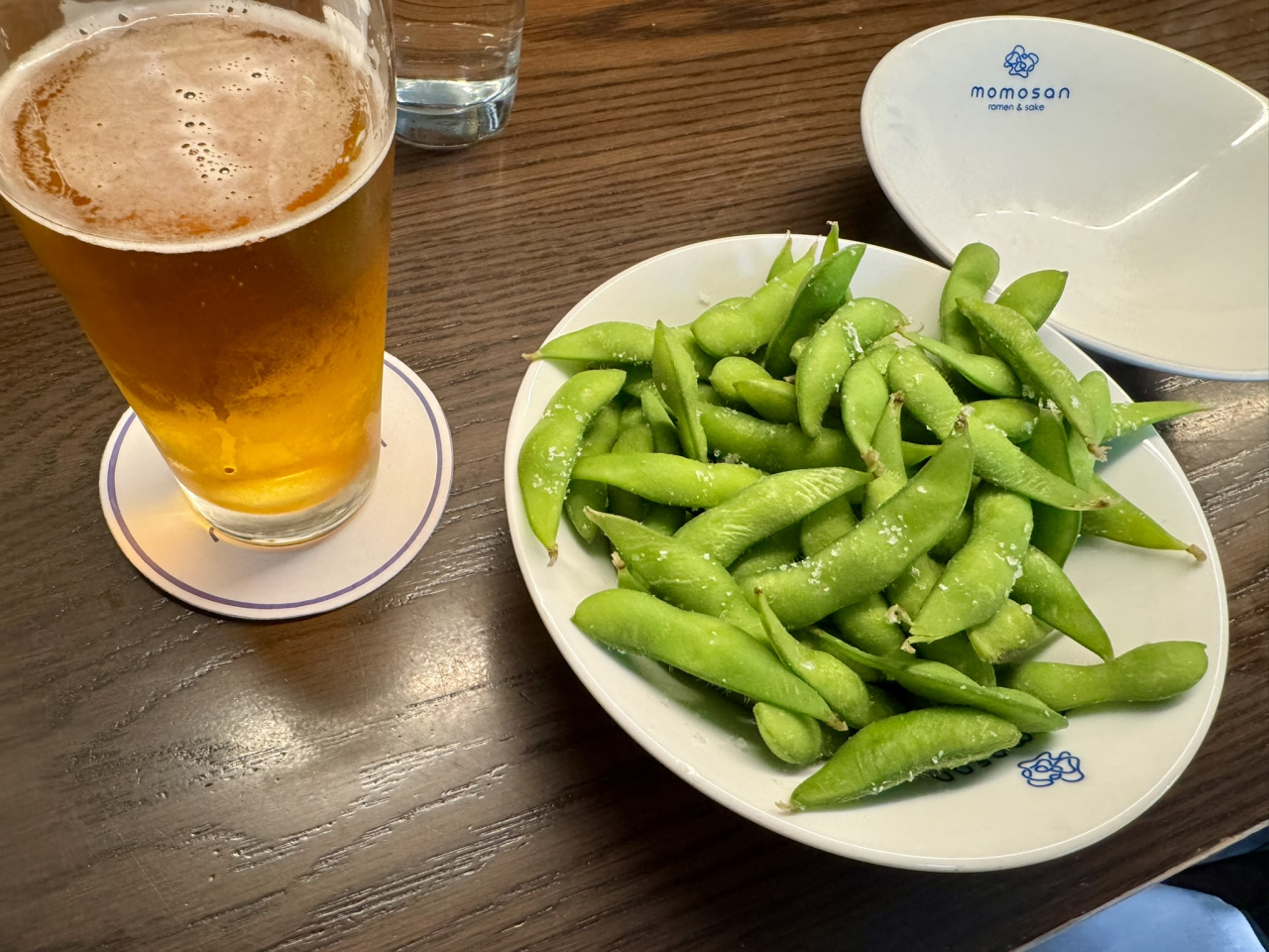 枝豆は東京の2~3倍の量がありました、ラーメンはまずまずの味でした