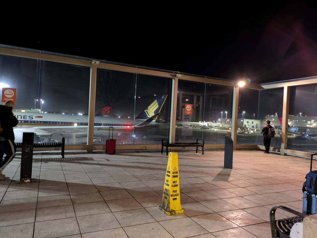 愛煙家の方々にとっては何時間もたばこが吸えないのはツライところで、日本の空港には制限エリアにも喫煙所がありますが、海外では無いところも多く、LAXも同様だと思っていました。