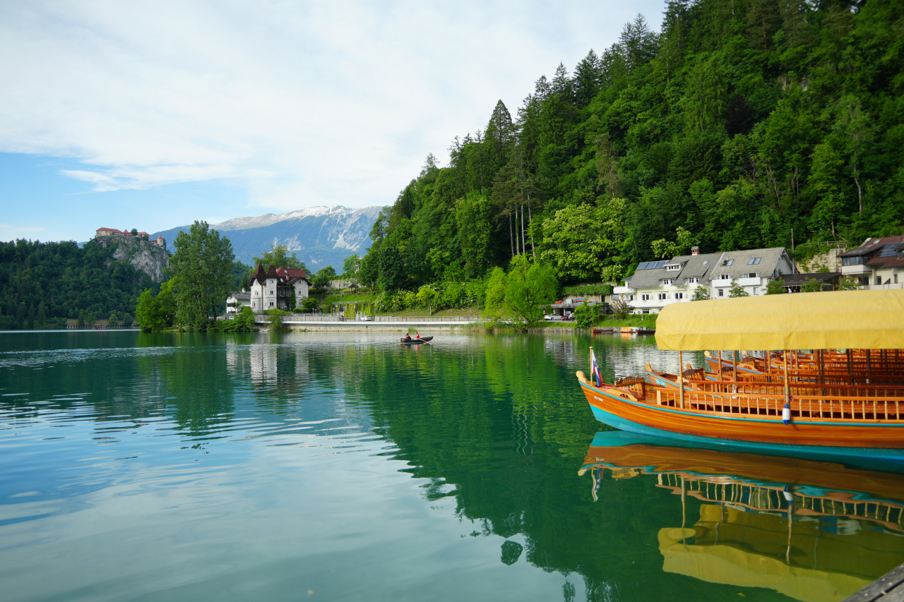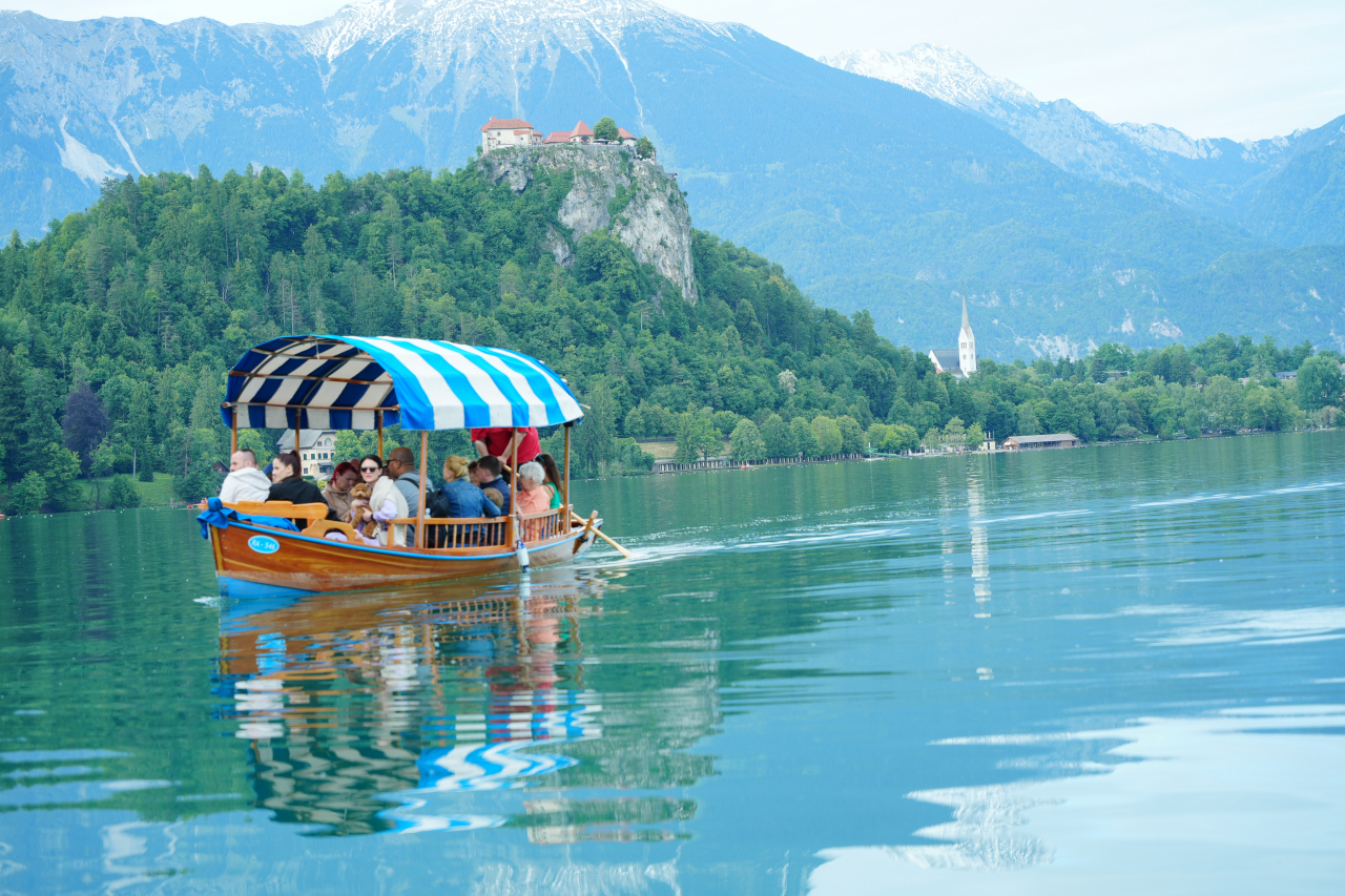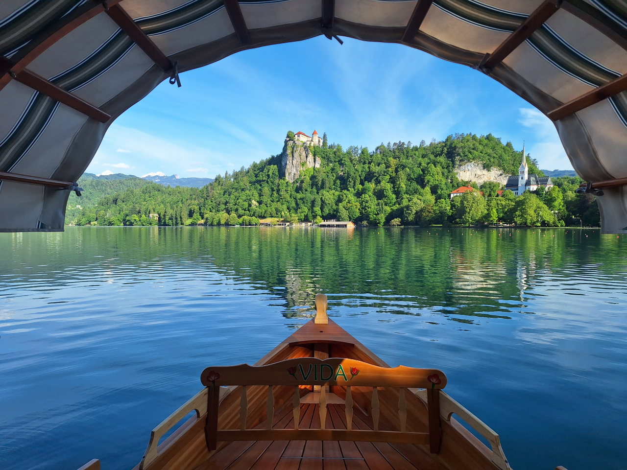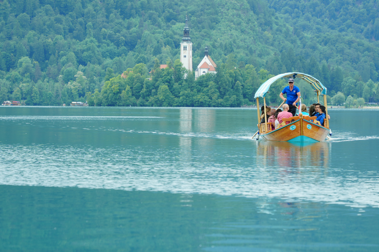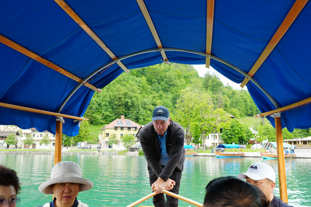 ブレッド湖の湖岸と、湖に浮かブレッド島をつなぐ渡し舟です。