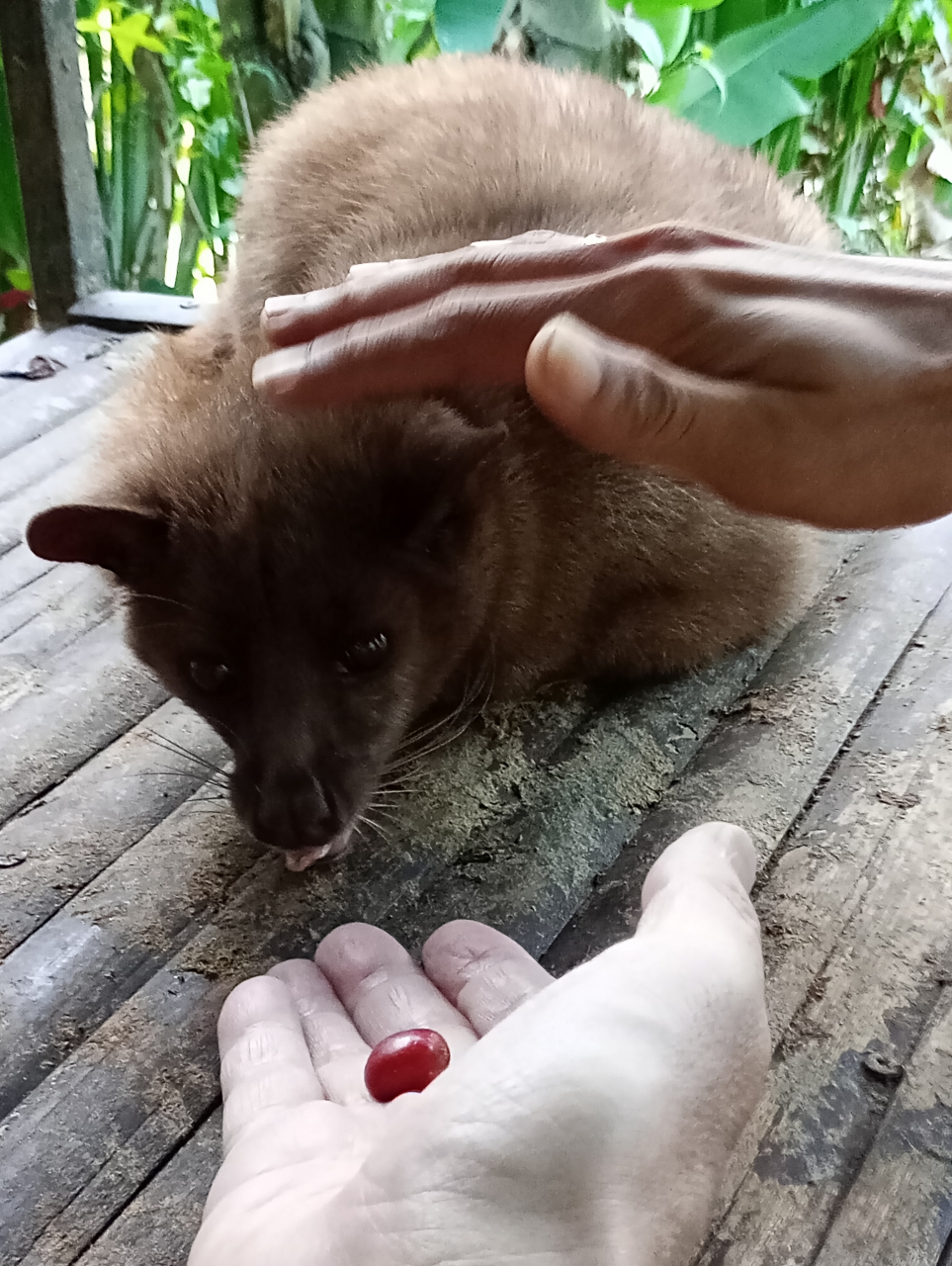 - かわいいジャコウネコ君と戯れる事もできて楽しい