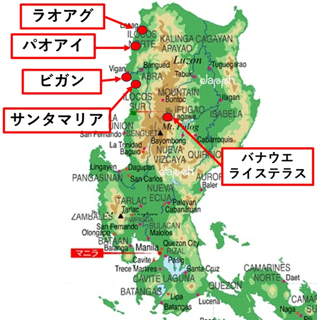 ルソン島北部の標高2000mのコルディリエーラ山脈の中央に位置するイフガオ州のバナウエにあります。
