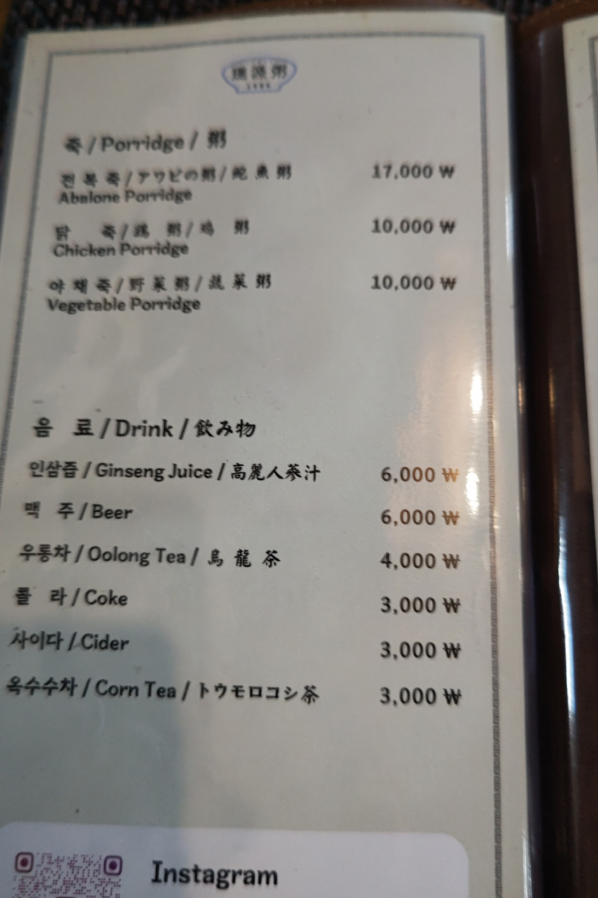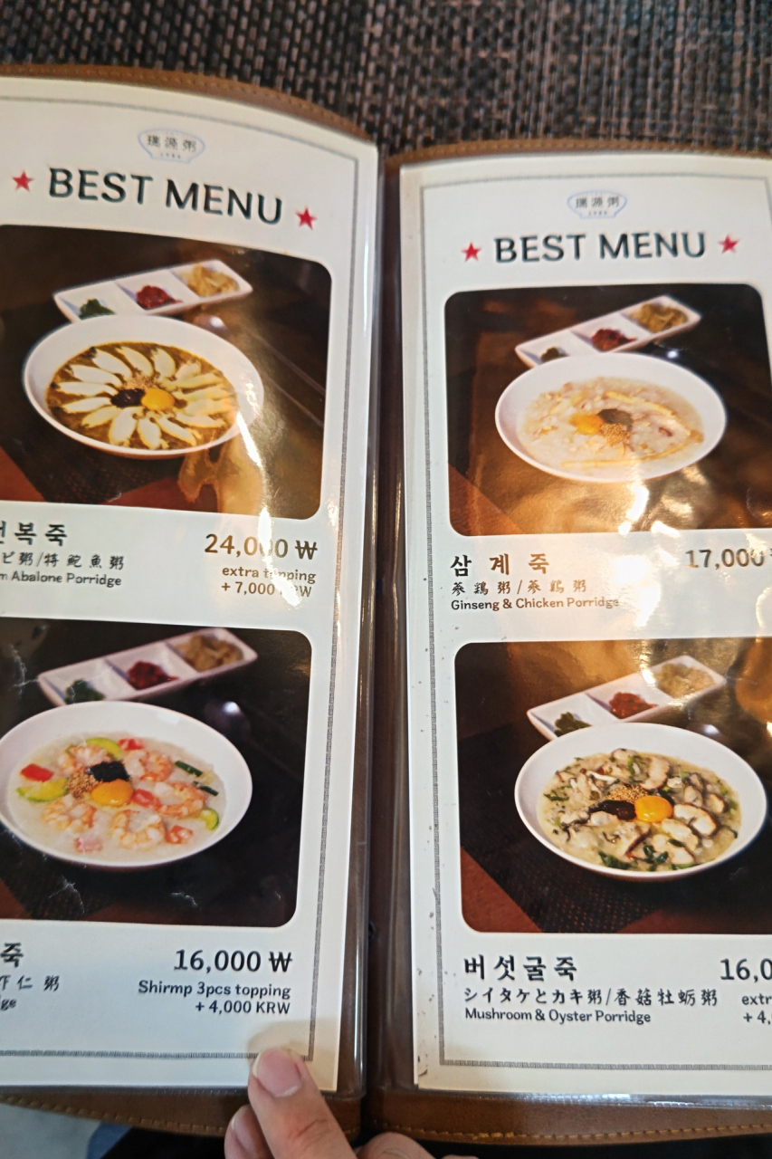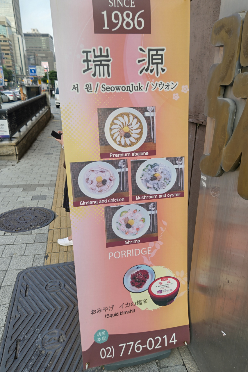 明洞駅の10番出口から出てすぐのお粥専門店。7時開店で、オープン前から行列ができるとのことだったので、15分前くらいから並びました。4人目。並んでいる人は皆、日本語でした。アワビ粥を注文。特アワビではなくても十分です。優しい味付けとアワビの食感最高でした。やっぱり日本人に人気があるところは美味しいです。