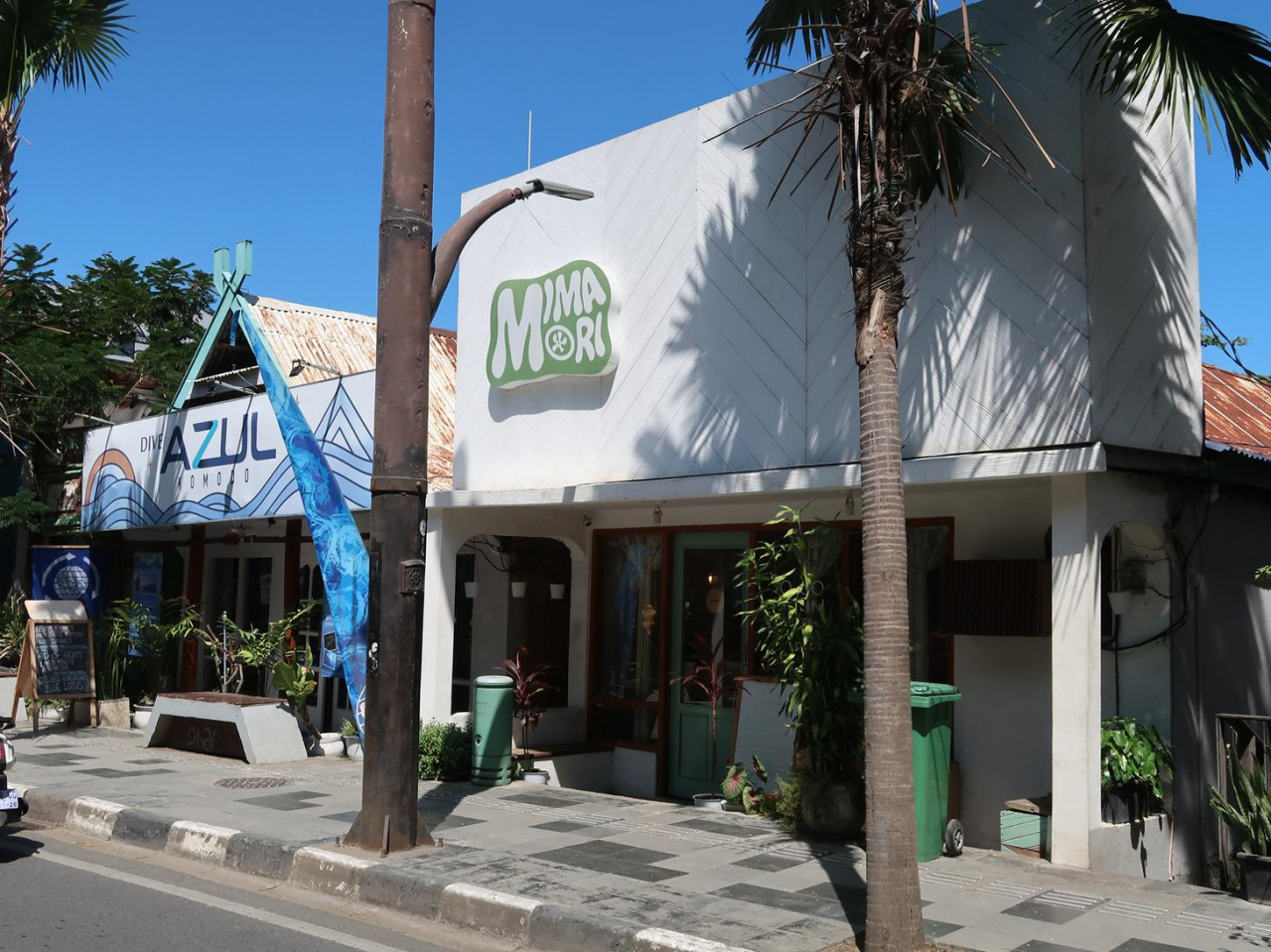 マリン・スポーツ店やツアー会社、食事場所や商店が賑やかに並ぶラブアン・バジョのジャラン・スカルノ・ハッタ沿いにあるMimamori Bajoは、ヘルシーな食事や飲み物が売りのカフェ。
