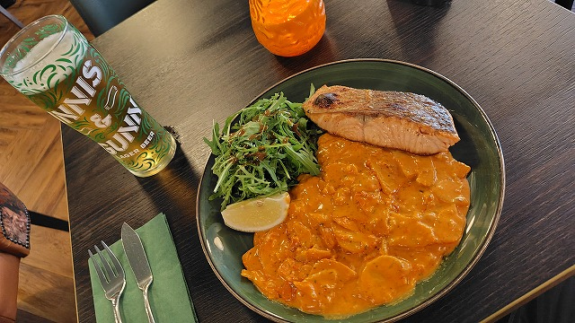 ここで無難にサーモンのステーキにしてしまいました。これはこれでおいしい。付け合わせはチップスだけでなくポテトのソテーも選べてよかった。