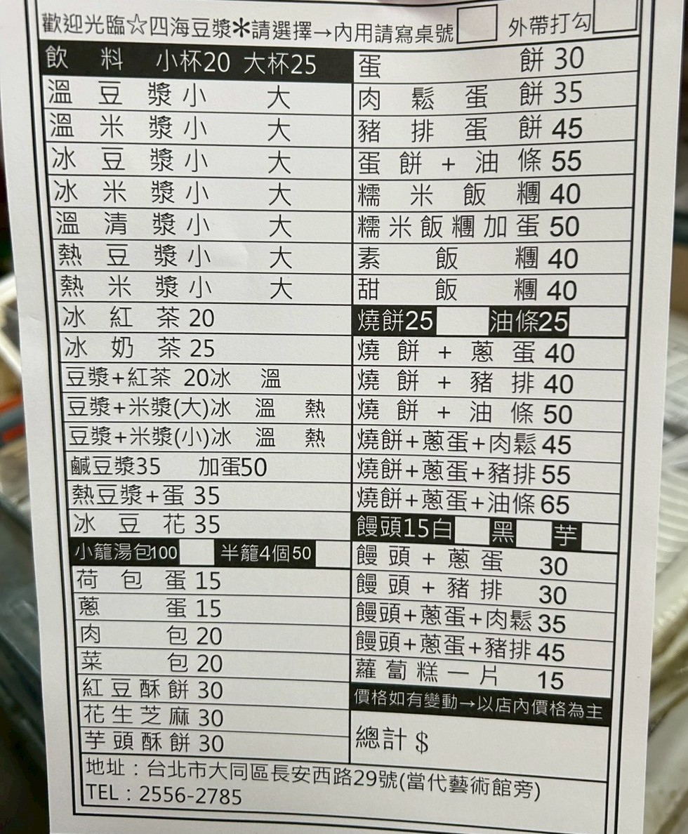 MRTの台北駅と中山駅の中間にあるローカル・レストラン「四海豆漿大王」は、人気の店らしく列ができていましたが、さほど待たずに席につけました。