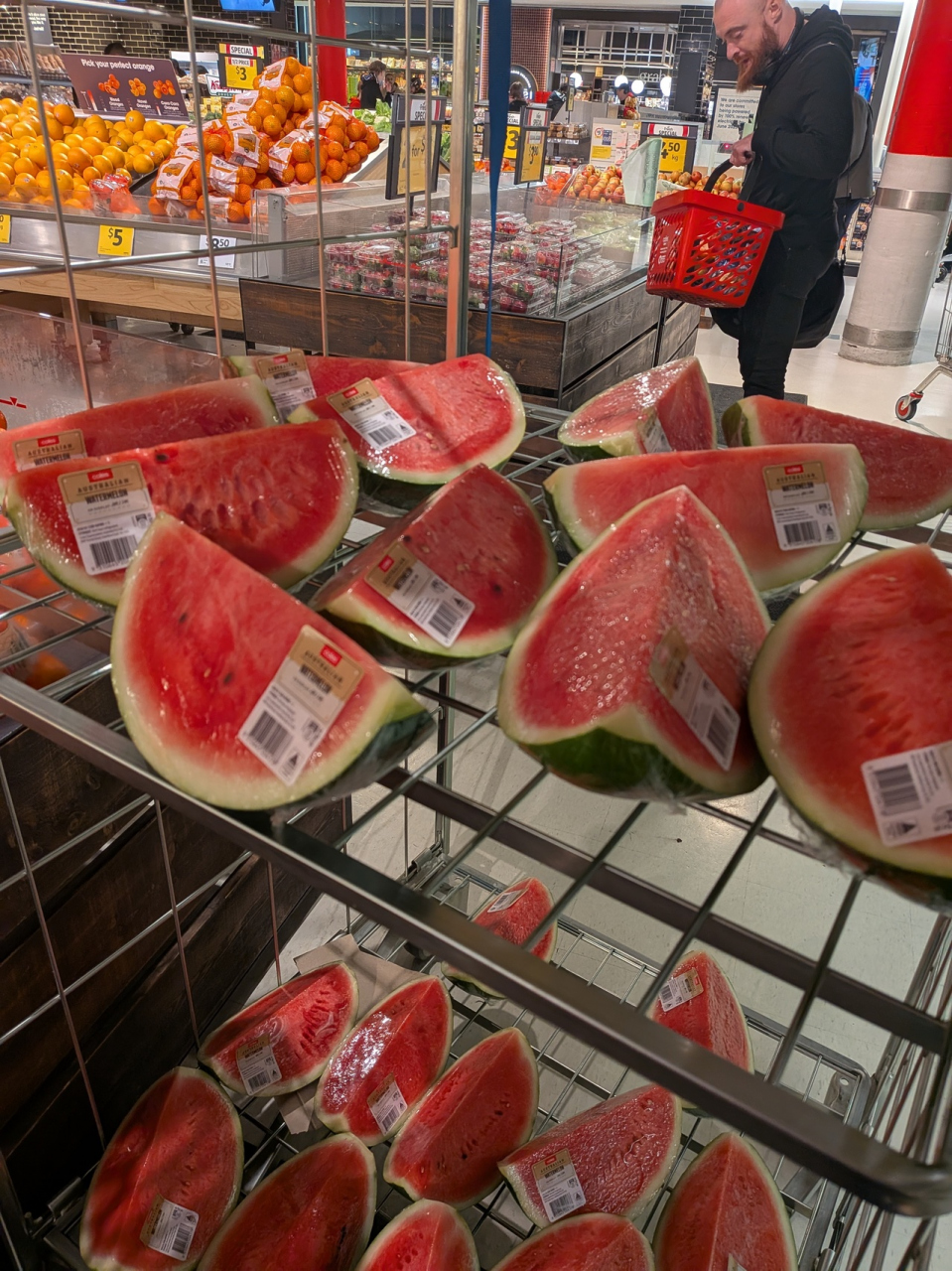 サザンクロス駅に直結したSpencer Outlet Centreの1階(こちらではGフロア)にあるコールス。オーストラリアは物価がかなり高いので、コンビニで飲み物を買おうにも躊躇してしまう値段ですが、こちらではナショナルブランドもプライベートブランドもかなり安く購入できます。また、生鮮食料品の品揃えも良いので、キッチンのあるホテルの場合はこちらで食材を揃えることも可能。お肉や魚は量り売りもありました。長距離列車もこちらから出発するので、味のレベルは別にして、サンドウィッチやおにぎり、寿司なども購入できます。