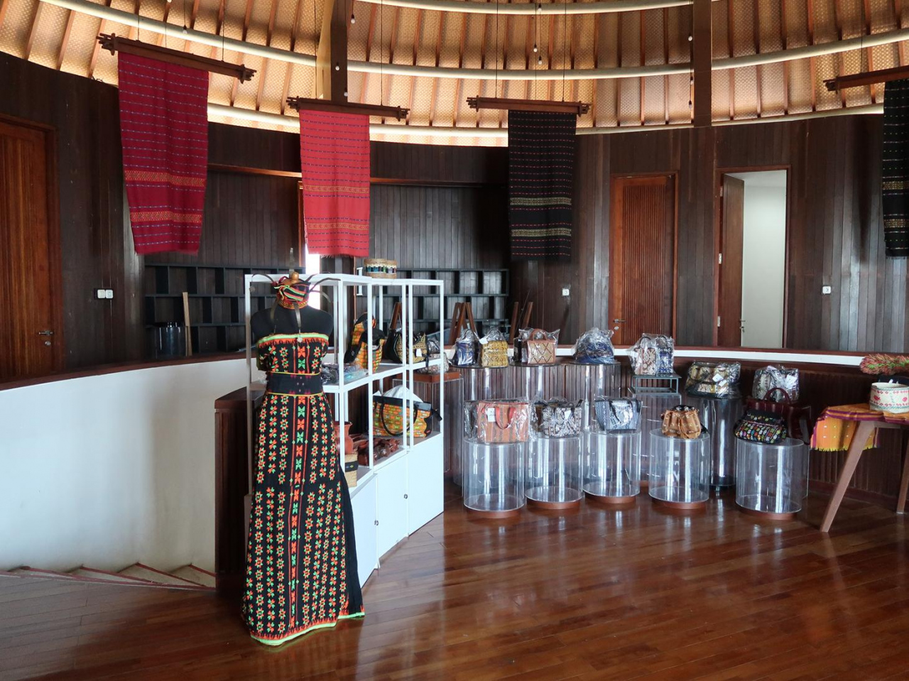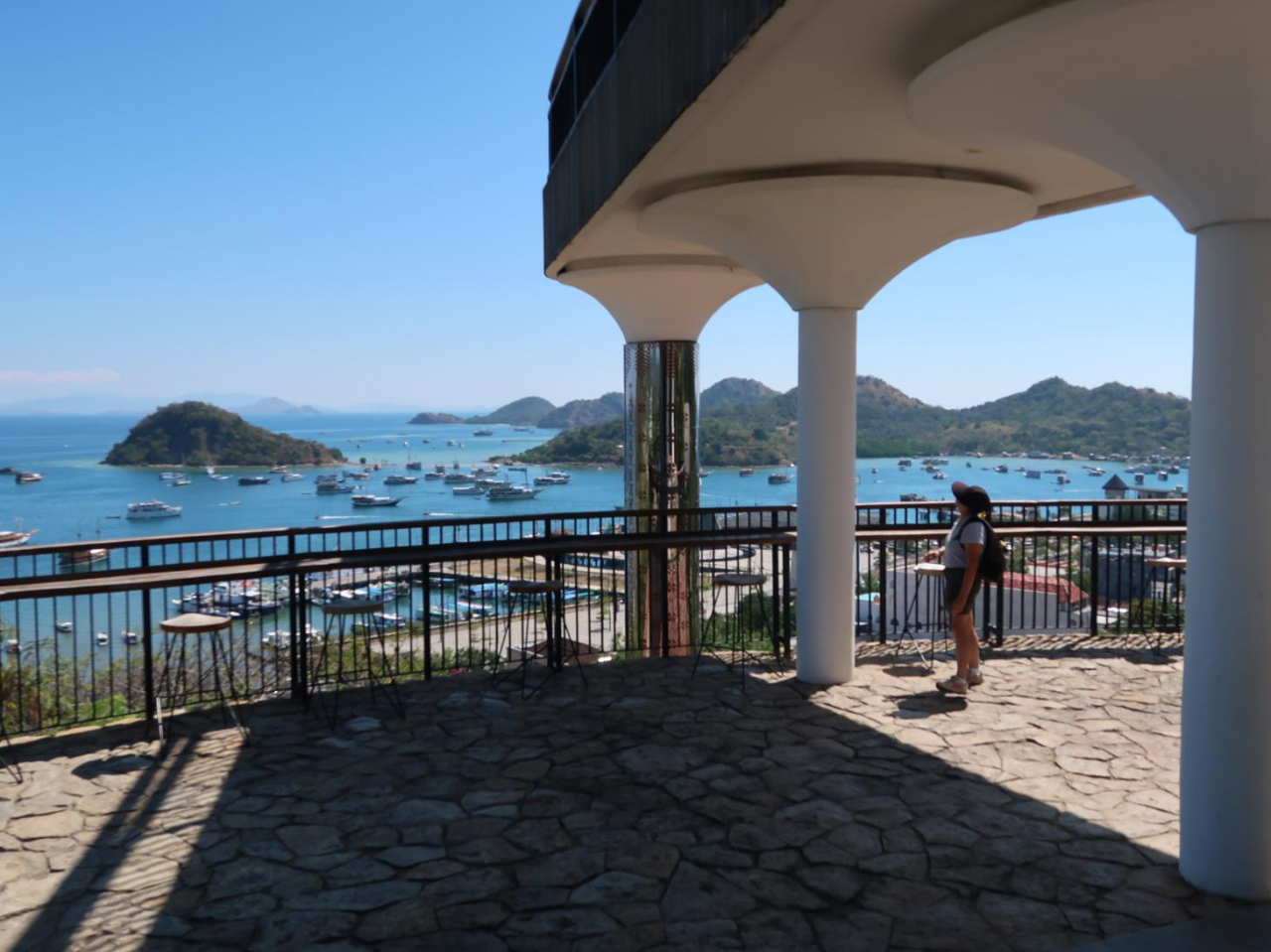 織物製品の展示や販売コーナーが入った建物。展望デッキからのラブアン・バジョの街と海の眺めが最高!