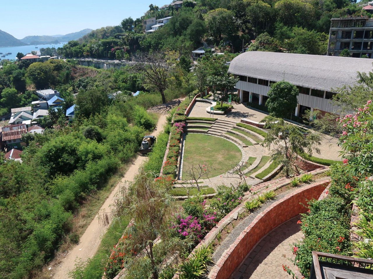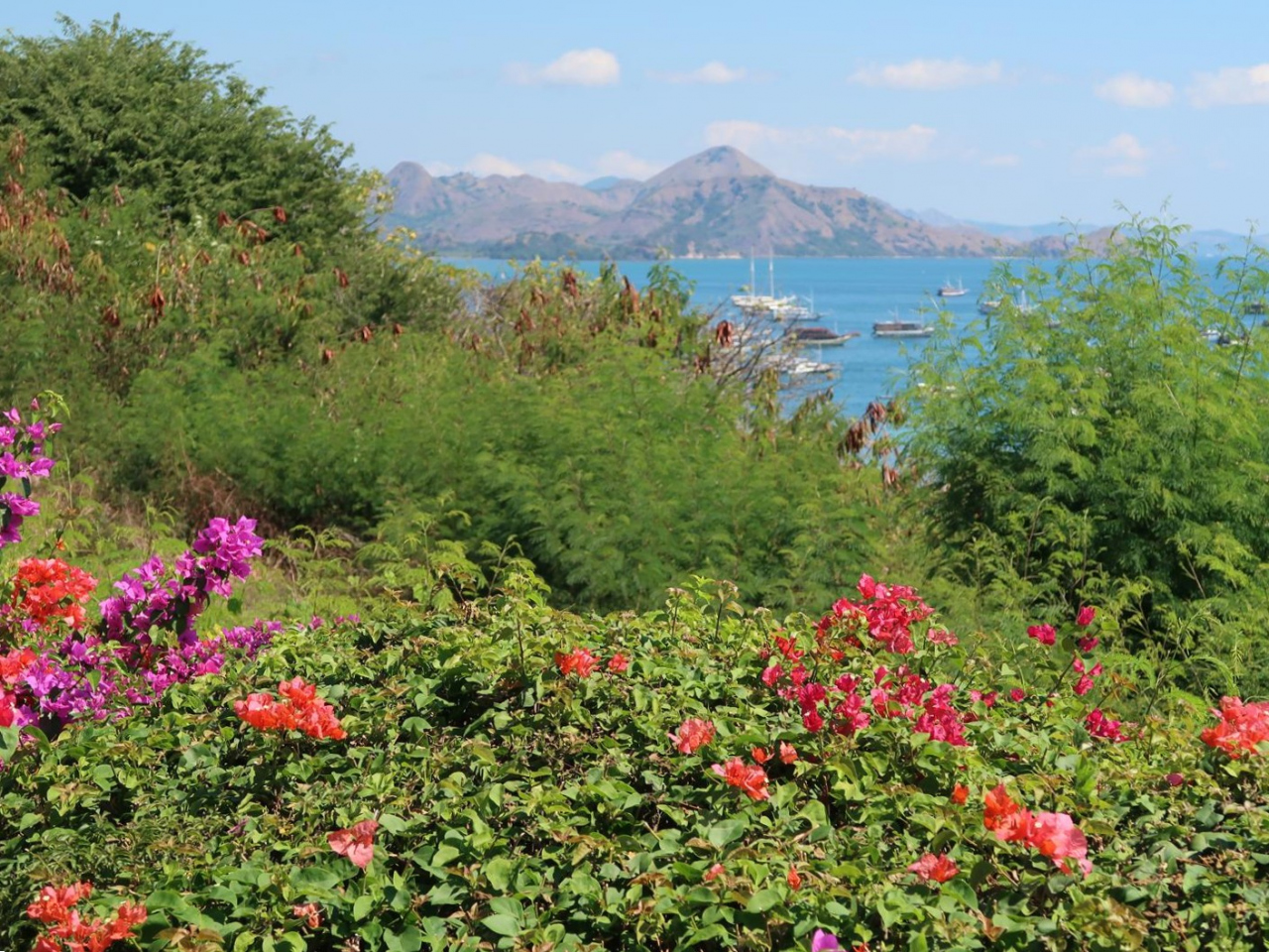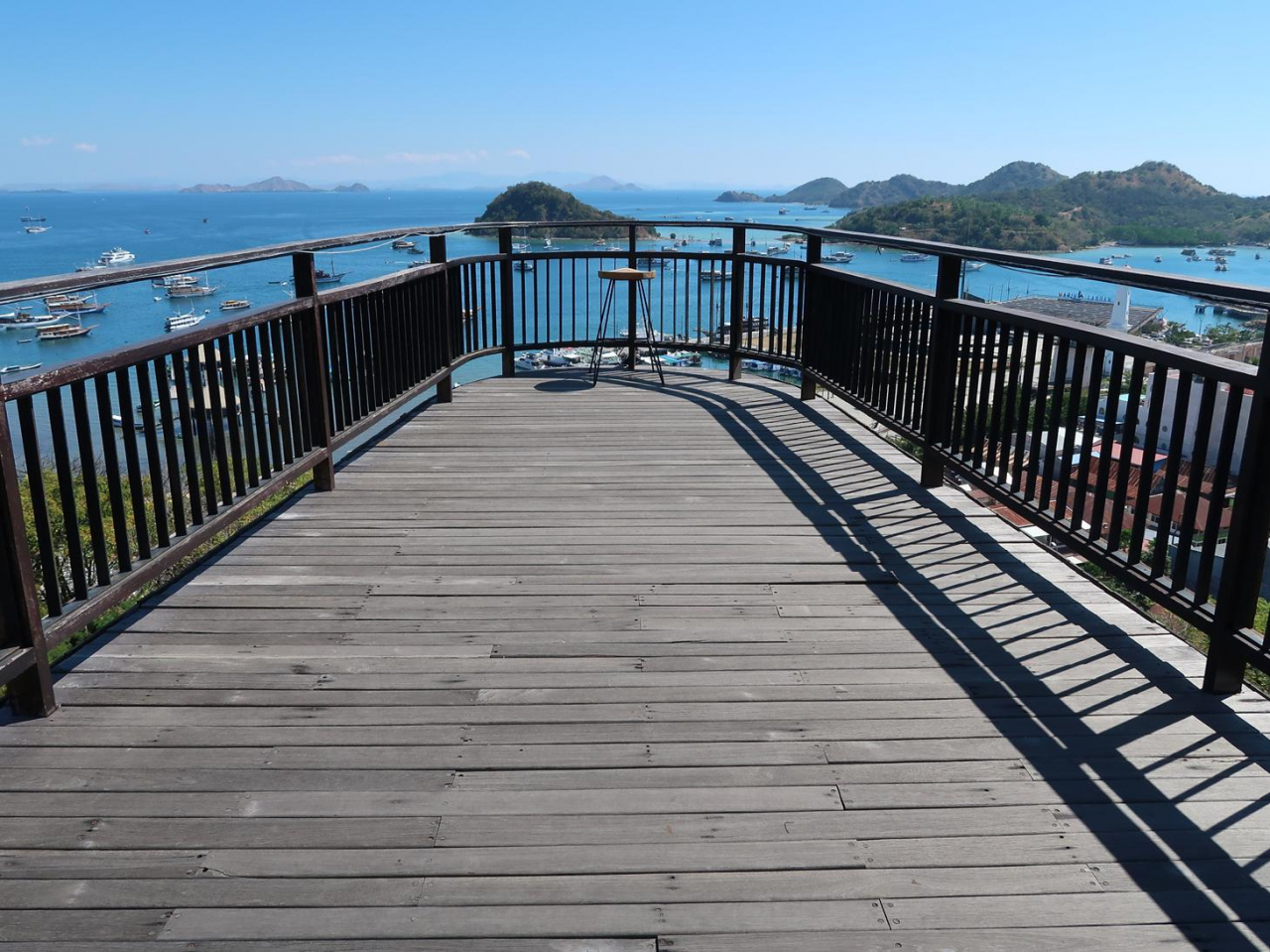 きれいに整備された庭に囲まれたその建物内には織物製品の展示や販売コーナーがあるほか、長く突き出した展望台から見下ろすラブアン・バジョの街やフローレス海の眺めが最高!